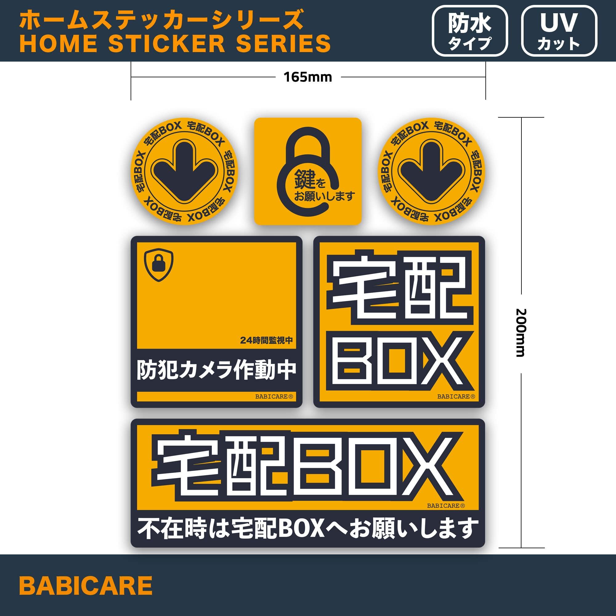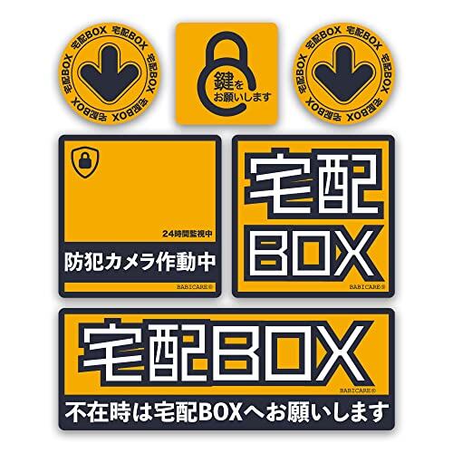 【BABICARE】不在時は宅配BOXへお願いします ステッカー 6枚セット 光沢/高耐候/防水/耐光/UVカット/日本品質PET製(オレンジ)