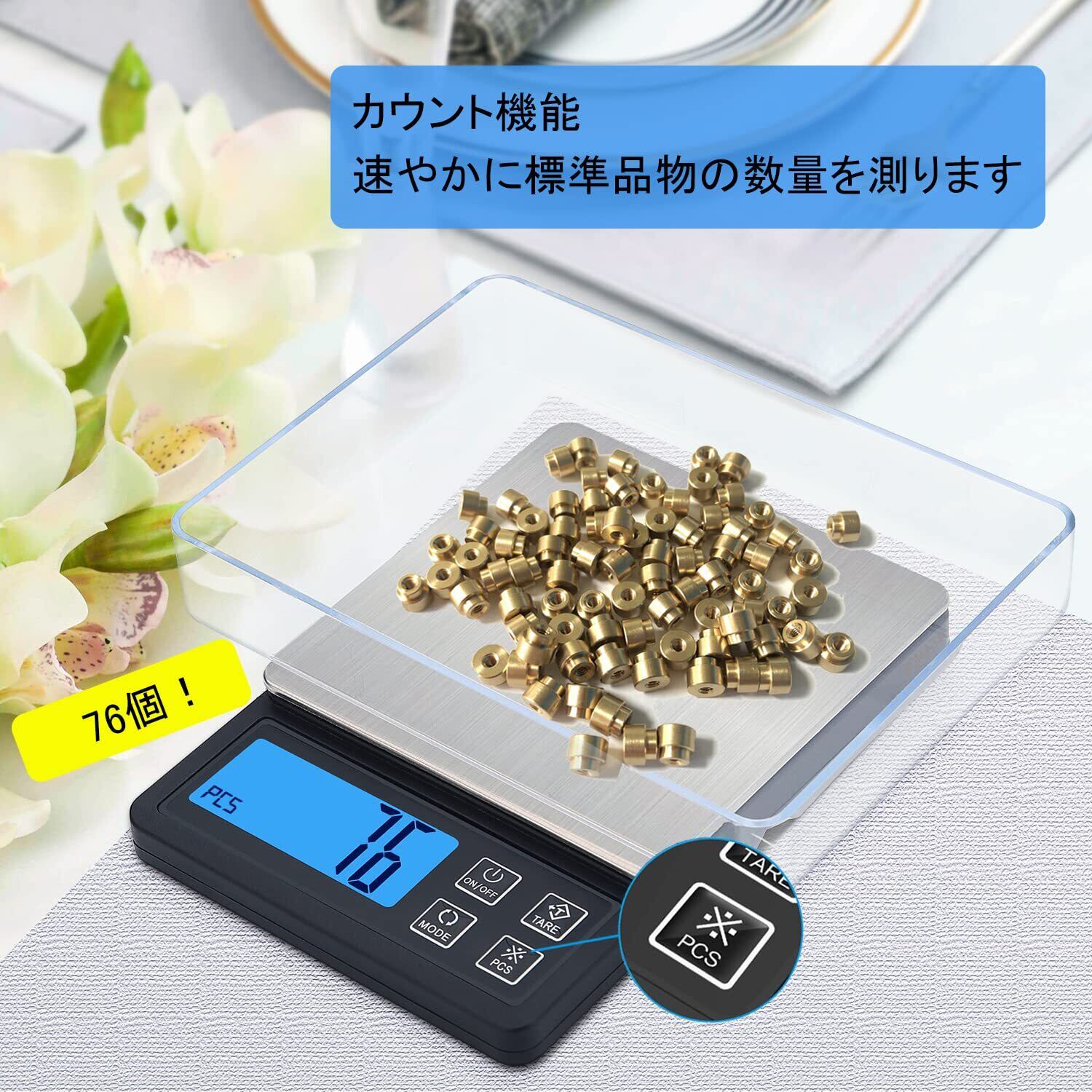 【正確に安定】 0.1g単位、計量範囲0.5g~3000g。高品質の圧力耐力センサーを使用しています。(注意:最小表示単位≠測量の精度、スケールを購入する場合、測量の誤差をお気をつけください。通常、0.1gスケールの測量誤差が≥±0.2g。0.1gまでの精度が必要な場合は、0.01g単位のはかりをお勧めします)