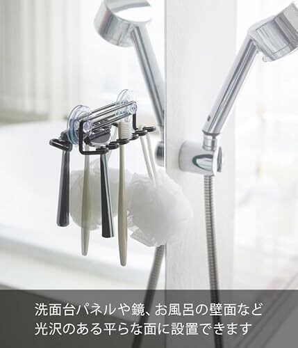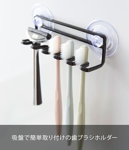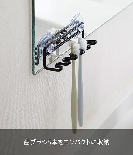 山崎実業(Yamazaki) 歯ブラシスタンド ブラック 約W15XD4.5XH5.5cm タワー 吸盤トゥースブラシホルダー 5連 3286