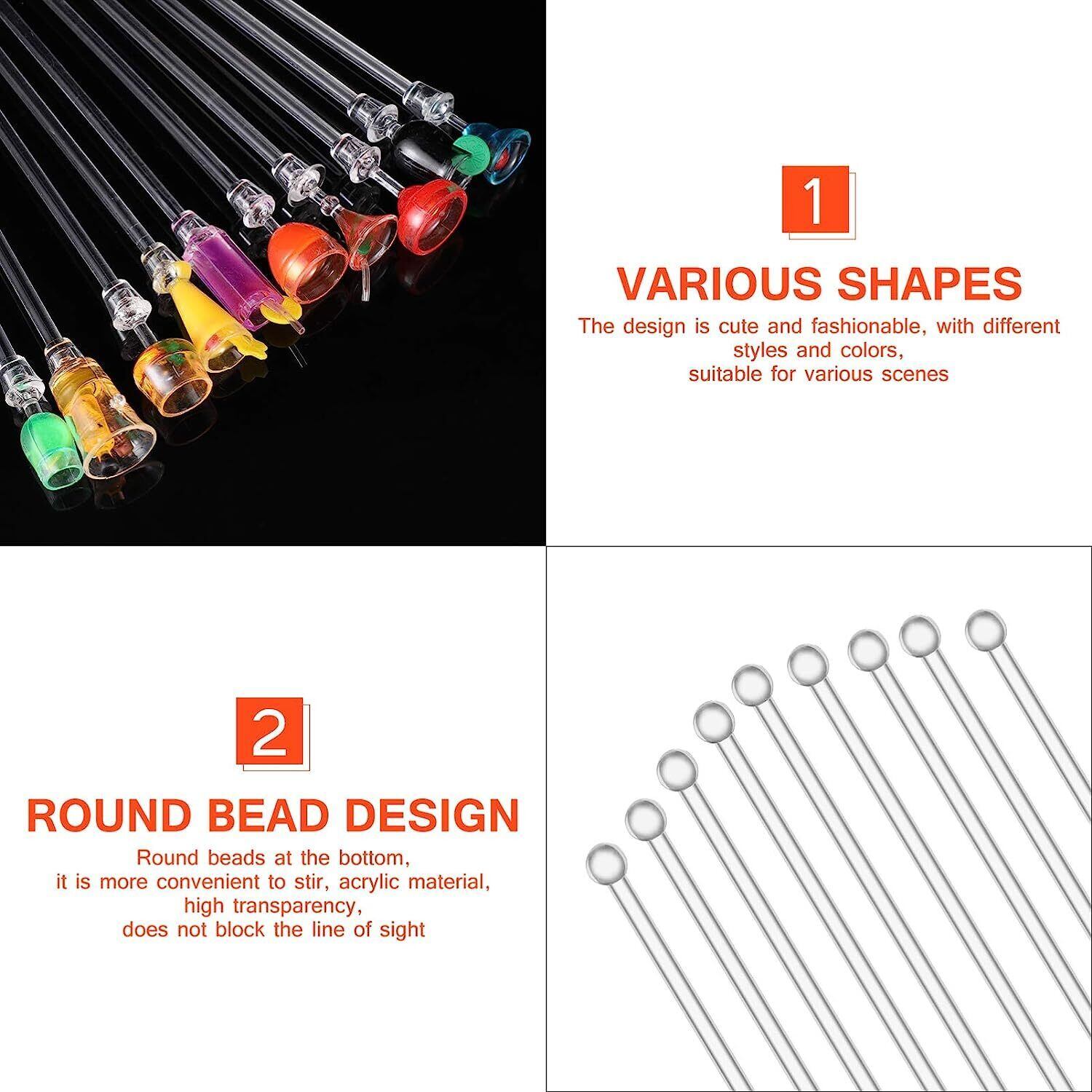 OUNONA ロングマドラー 攪拌棒 アクリル 23cm 可愛い お洒落 ウイスキー 飲料用 お酒用 10本セット ホーム ホテル レストラン バー カフェ用 業務用 ランダムカラー