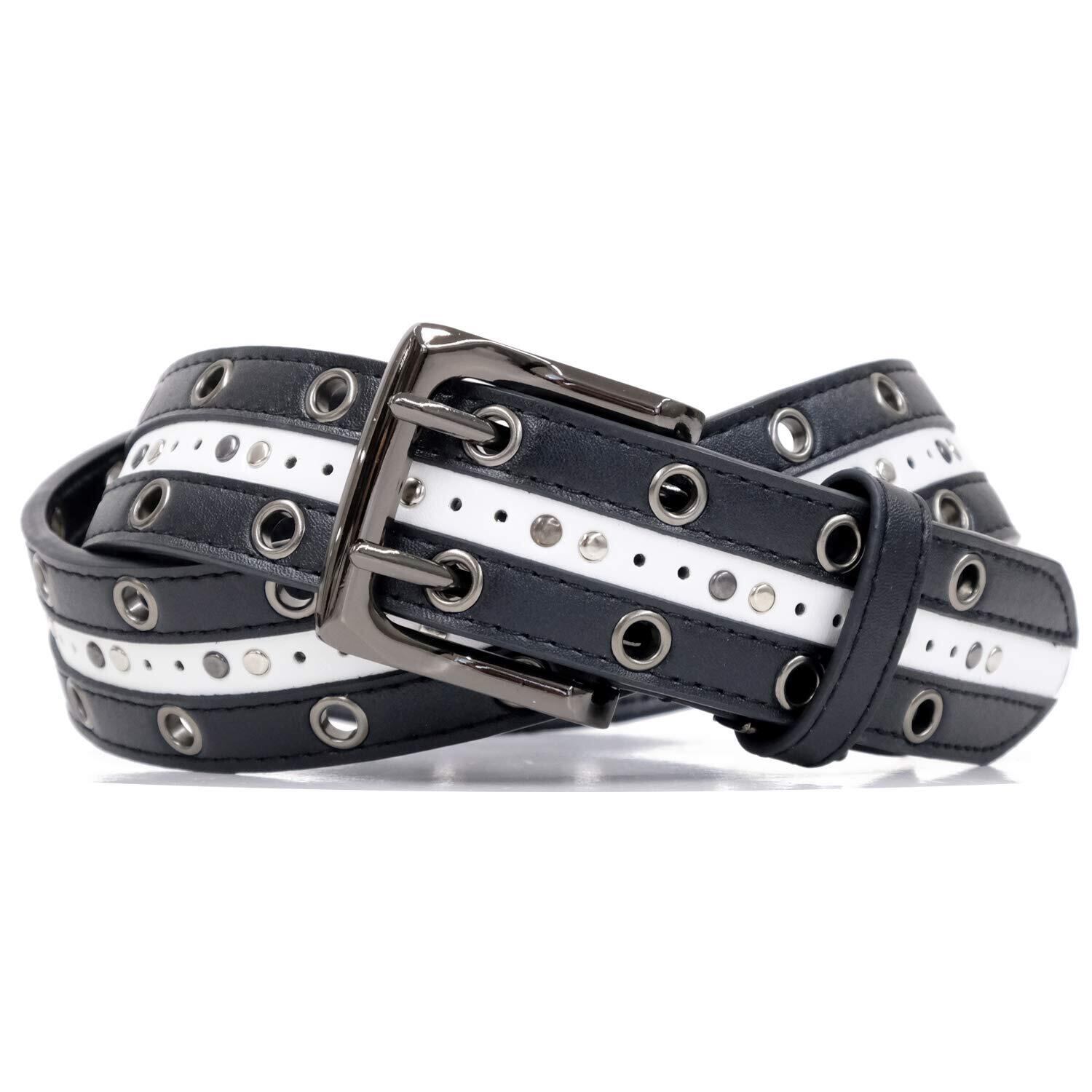 [BEEL] ベール ベルト ダブルピン メンズ レディース カジュアル 合成皮革 ピンホールベルト ブラック