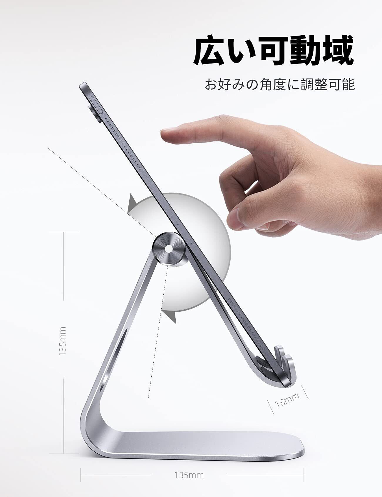 タブレット スタンド アルミ ホルダー 角度調整可能 Lomicall stand : 卓上 縦置き スタンド タブレット 置き台 デスク台 立てる 設置 aluminium テレワーク 在宅 ワーク Zoom 会議 ミニ エア プロ ipad 10 第十世代 ipad Air mini Pro第六世代 S7 S8 Note (4~13'') 対応 - シルバー