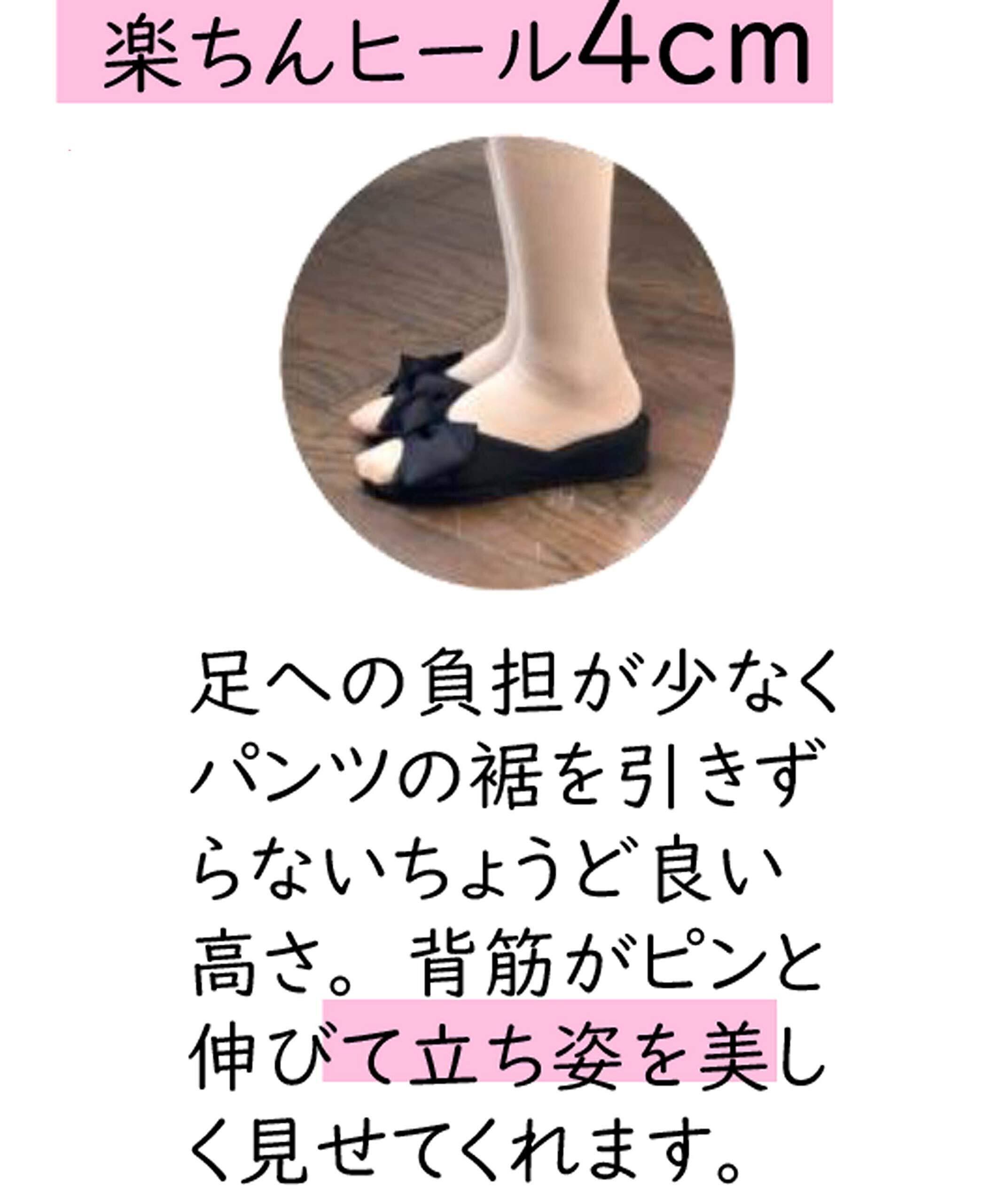 いつものスリッパをぐっとおしゃれに。楽ちんヒールで楽ちん美脚。4cmヒールで立ち姿をより美しく、疲れにくく設計しています。