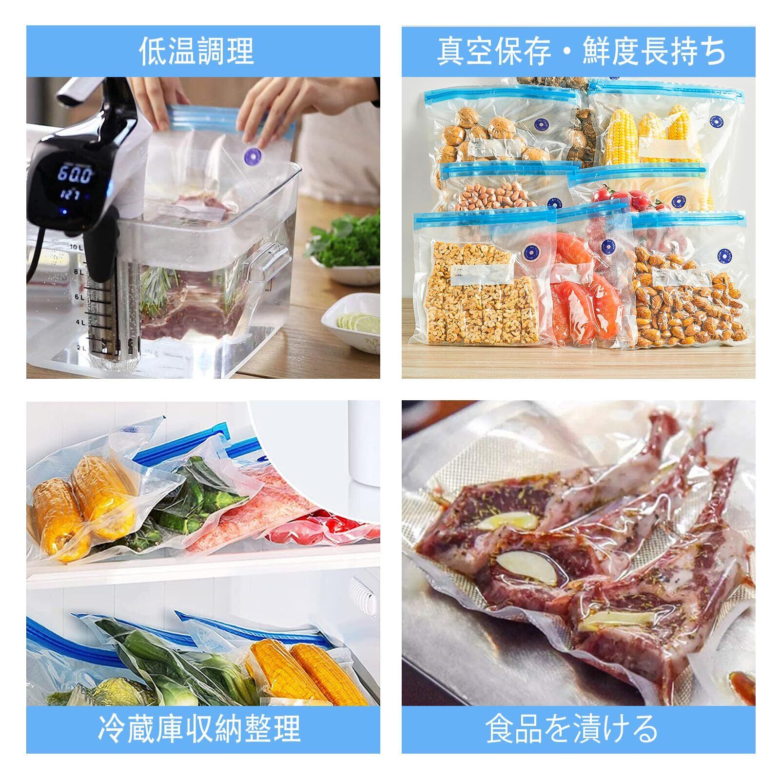【重複利用可能】製品に付属している真空パック袋はBPAフリーで、PA&PE材質を採用しました。お手入れは簡単で、重複利用も可能です。そのほか、環境にやさしく、衛生的です。