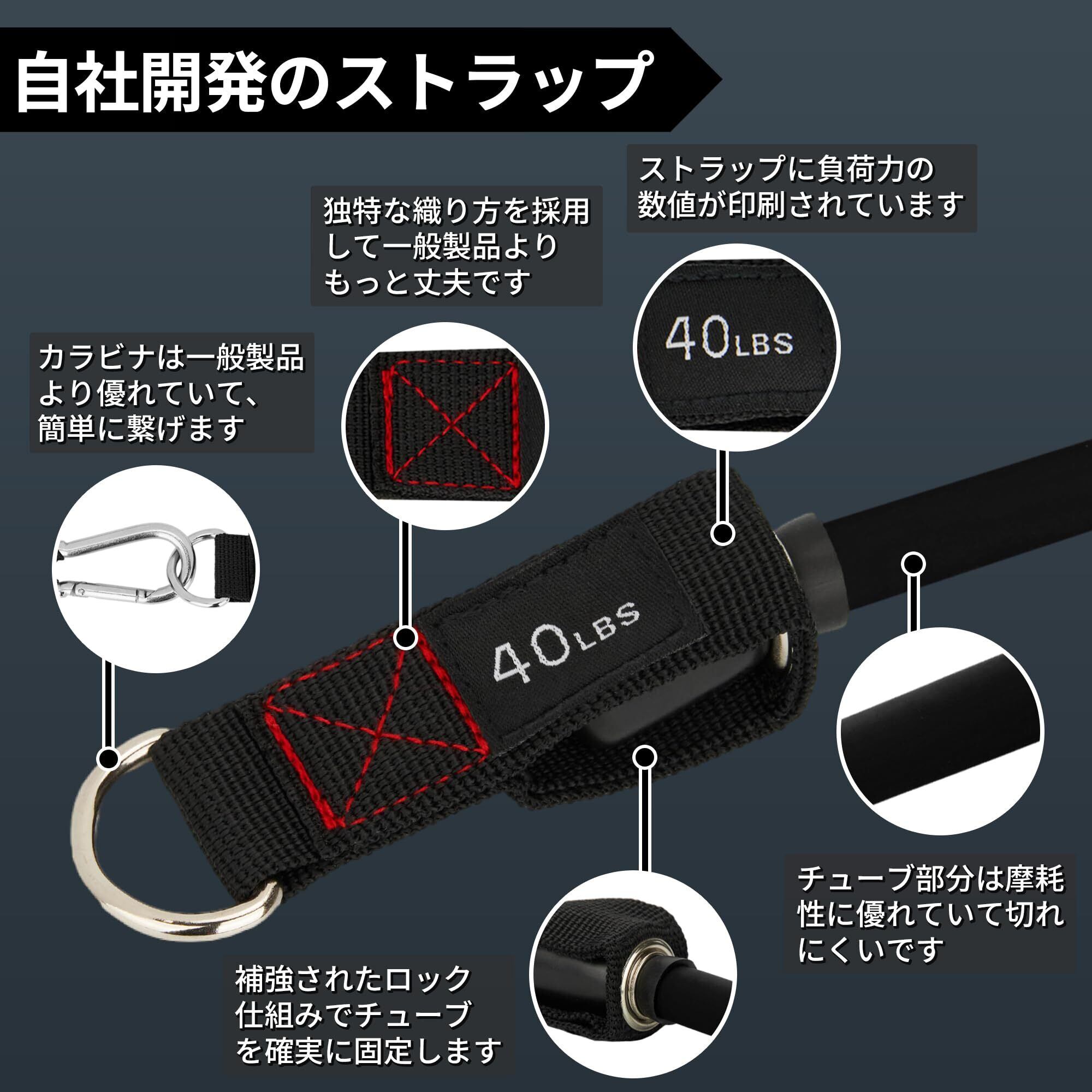 【高耐久性へのこだわり】:高品質の天然ラテックス素材および頑丈な足首ストラップを使用しております。チューブが破れるにくく、高強度の引っ張りに強いです。ハンドルは握り心地がよく、滑り止め仕様になります。長期間ご使用しても怪我のリスクが少なく、男性でも女性でもトレーニングできます。