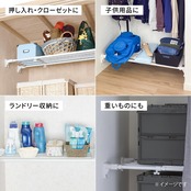 取付けた後も、スライド部分を伸ばして収納スペースを増やせる。押入れやクローゼットなど、広い空間にも。