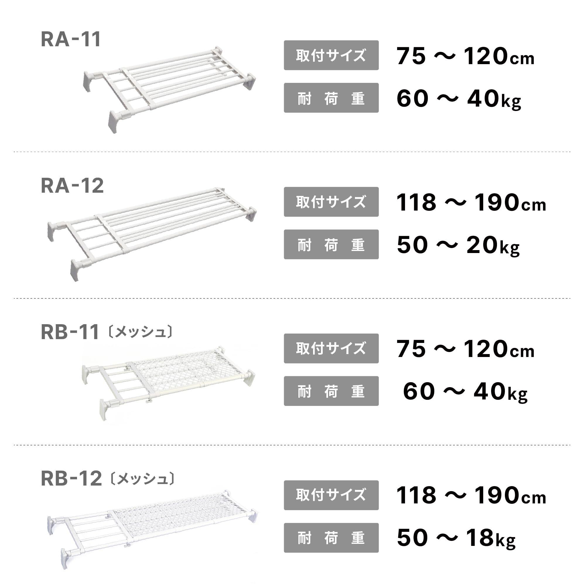 平安伸銅工業 HEIAN SHINDO つっぱり棚 超強力ワイド ホワイト 取付幅75~120cm 耐荷重60-40kg RA-11