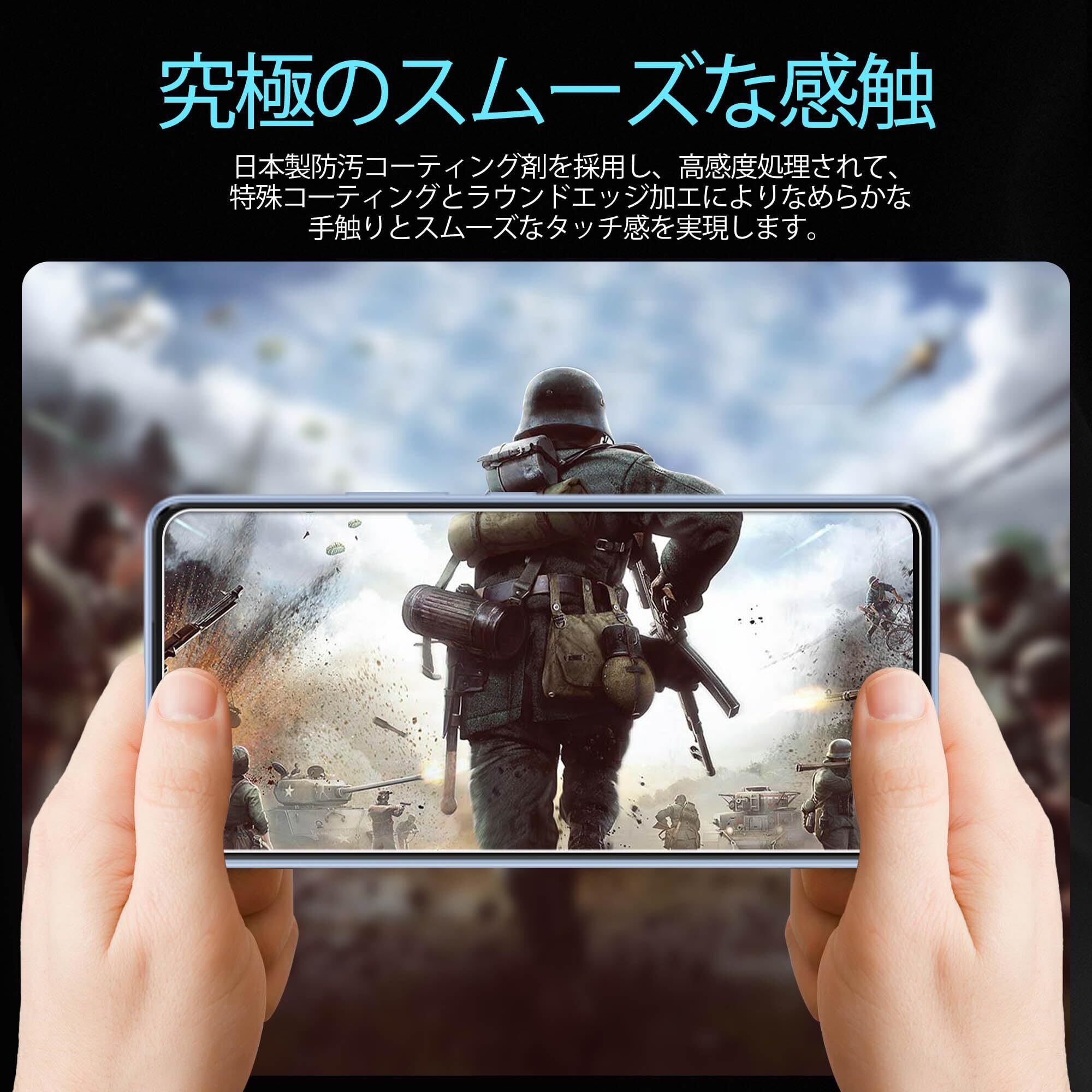 【指紋防止、高感度タッチ】ガラスフィルムには撥油コーティングが施されており、指紋や汚れなどに強くなめらかな操作感を実現、付着した汚れなどは簡単に拭きとれます。こちらは高耐久撥油コーティングが施され、つるつるな滑り感を実現!ゲームしても渋くなし!