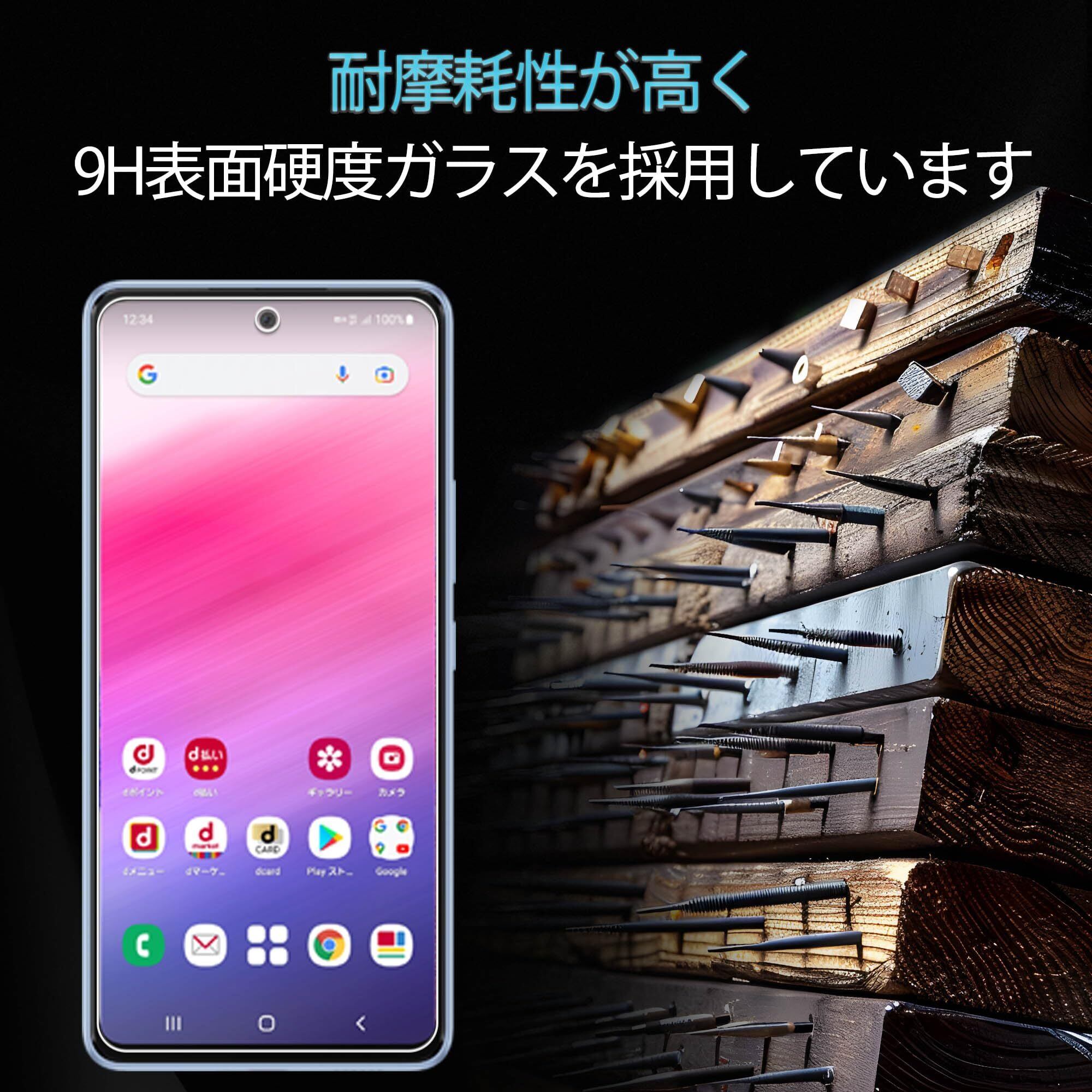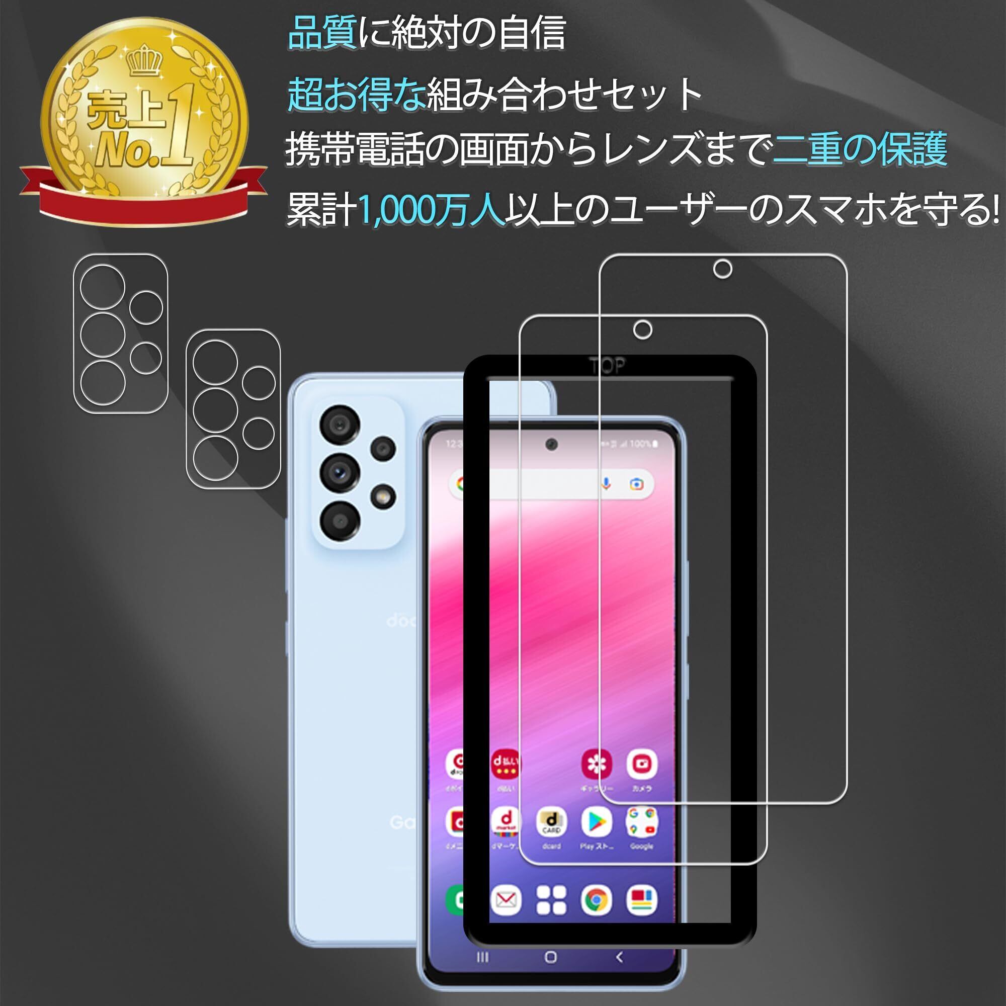 【指紋認証 2+2枚】ガイド枠付き KPNS 日本素材製 強化ガラス Galaxy A53 5G SC-53C SCG15 用 ガラスフィルム カメラフィルム カバー 保護フィルム