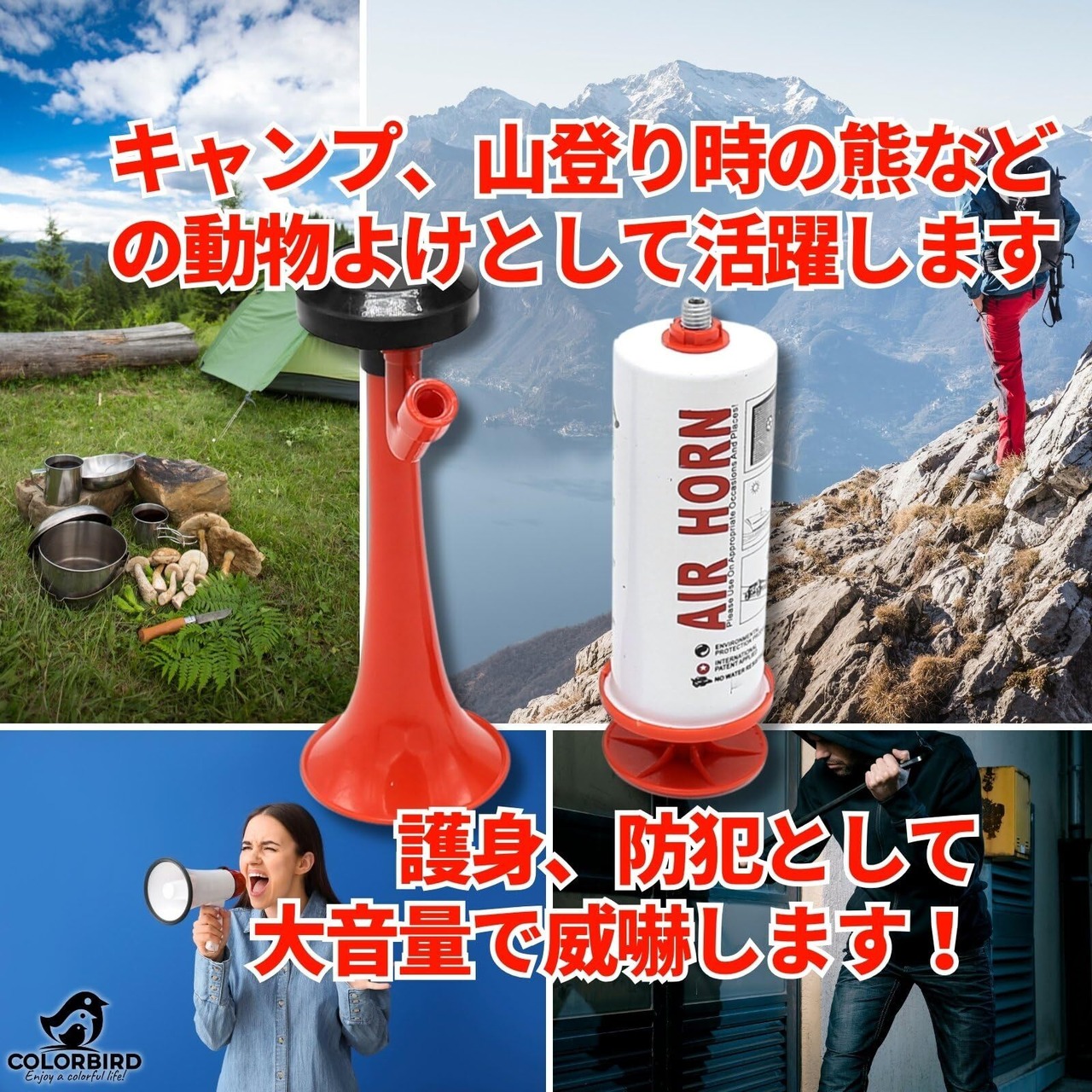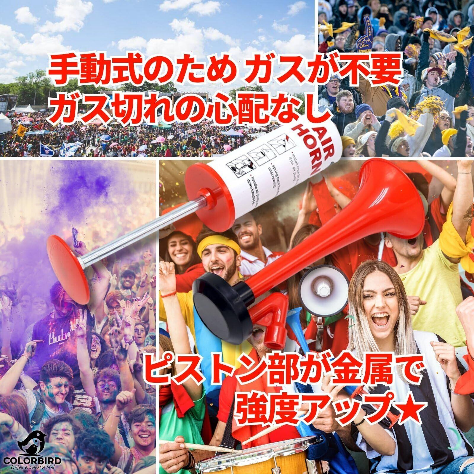 COLORBIRD 手動式 エアーホーン 大音量 防犯 エアホーン スポーツ観戦 応援 お祭り ブブゼラ 熊避け 護身用グッズ