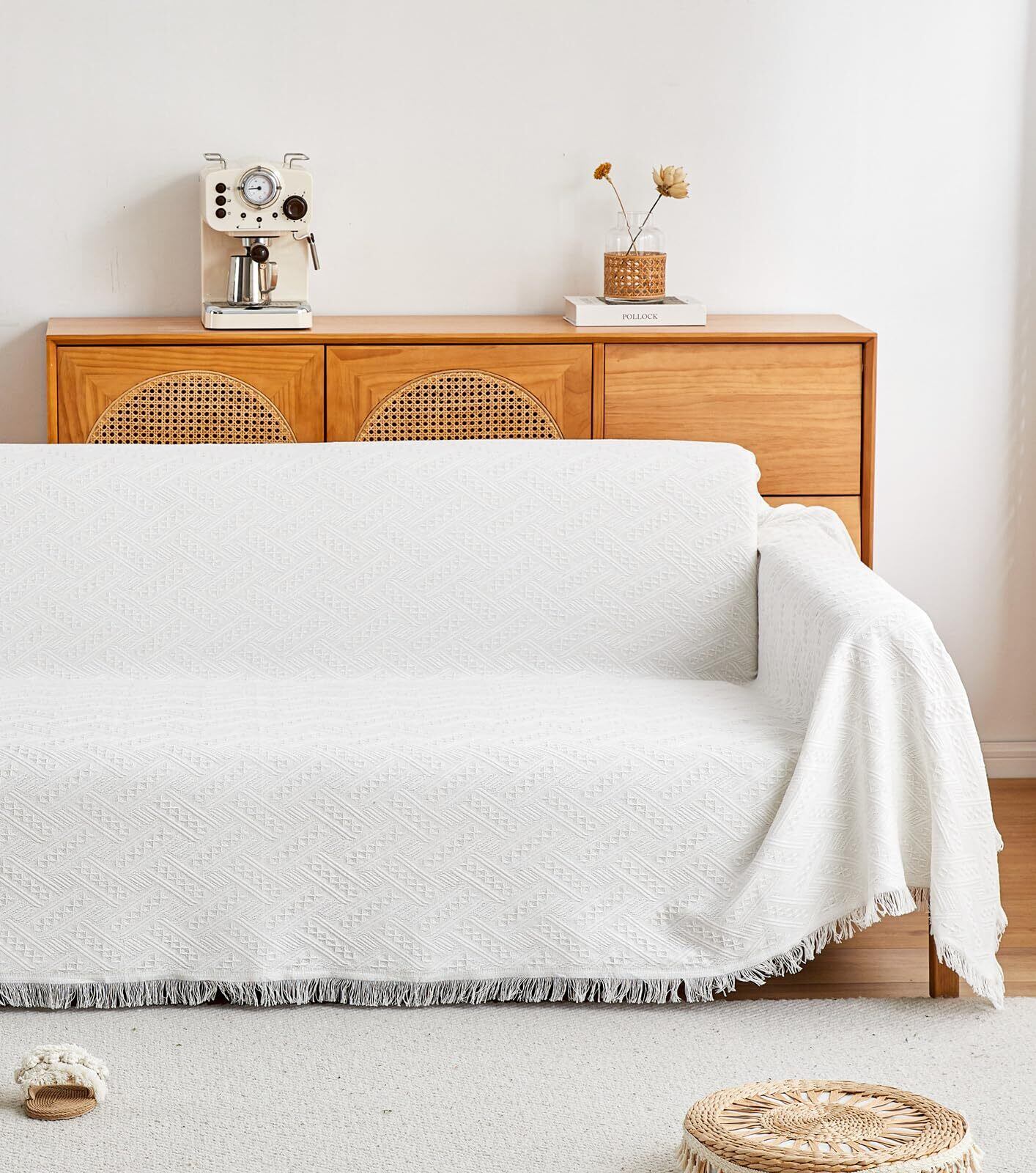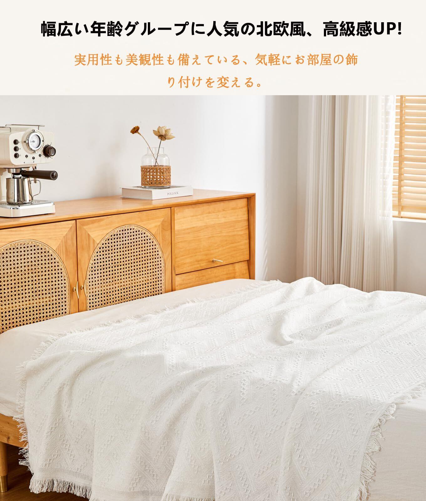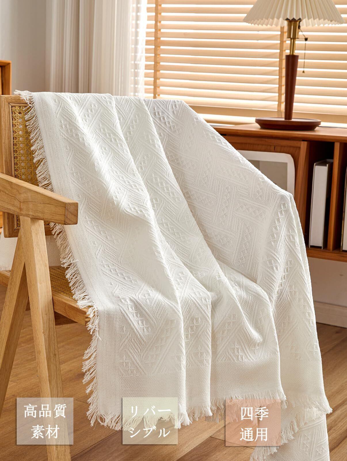 シンプルなデザイン フリンジ付き: 幅広い年齢グループに人気の北欧風、高級感UP。お部屋内のインタリアと合いやすく、使うと室内の雰囲気も明るくなりますぞ, 両面が違っていますが, どちらの面も正常に利用できます。飽きたときはベッドにかけたり多目的でつかえます。