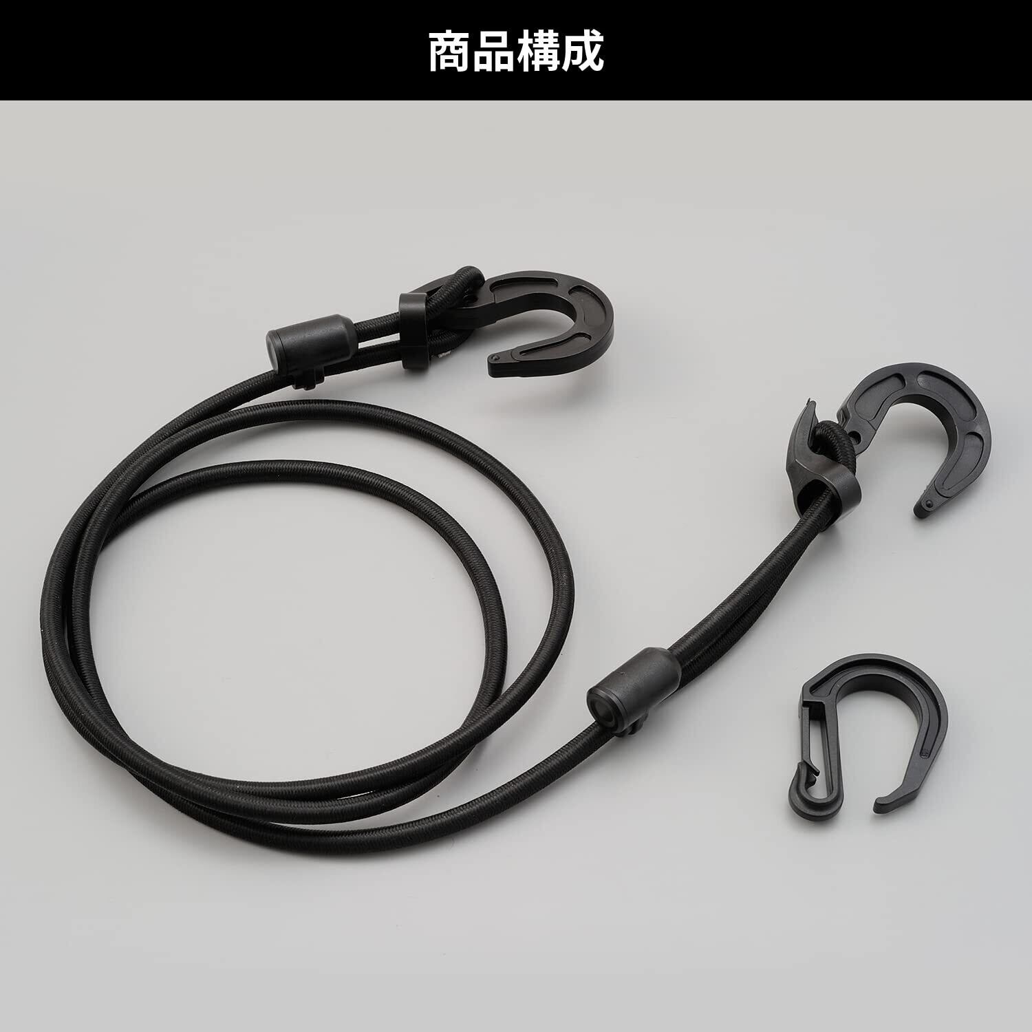デイトナ(Daytona) バイク用 荷台 ゴムひも 長さ調整式 ストレッチ コード&フック 1.5m ブラック 72210