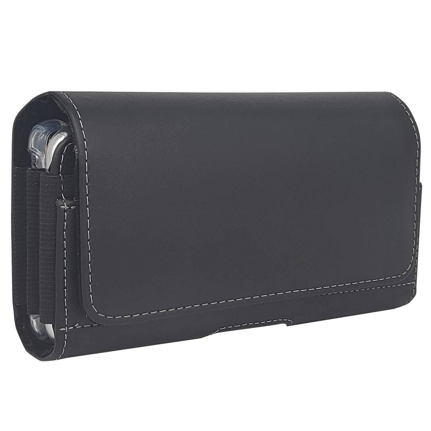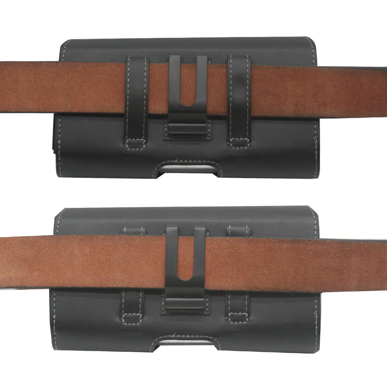 QBeau ベルトケース 携帯電話用 横型 2台収納スマホポーチ iPhone12 Pro Max iPhone11 Pro Max iPhone XS Max iPhone8 Plus iPhone7 Plus iPhone6s Plus スマホケース ホルダー 通し付き ビジネス ブラック