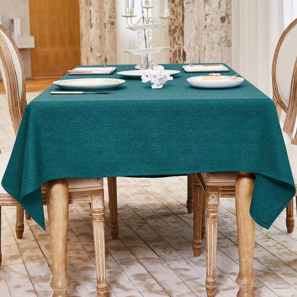 BALCONY & FALCON テーブルクロス 北欧 おしゃれ 撥水 加工 145*215cm 長方形 布製 類麻 リネン 無地 防水 防汚 防油 高耐久 上品質 お手入れ簡単 洗えるテーブルクロス 厚手 高級 青緑 グリーン