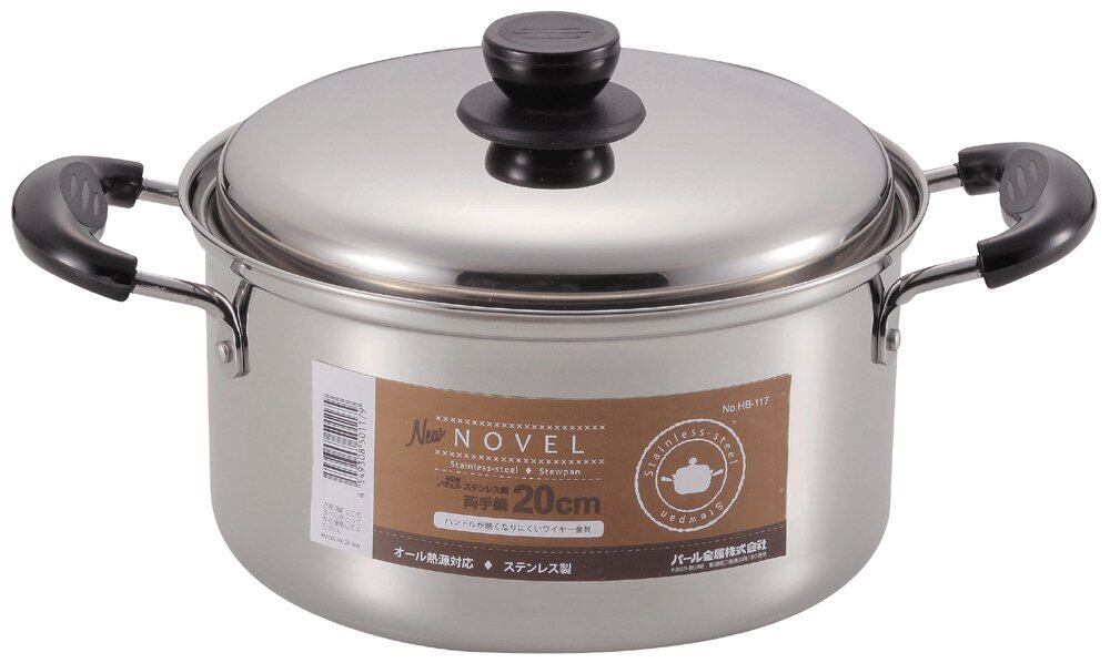 パール金属 両手鍋 20cm 鍋蓋付 IH対応 ステンレス NEWノヴェル シルバーHB-117