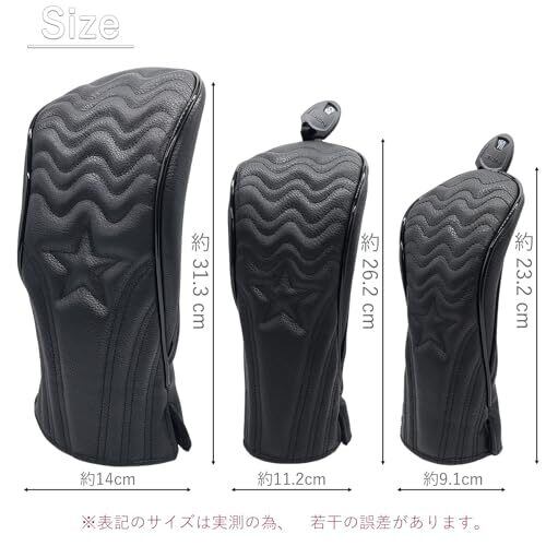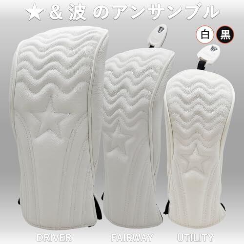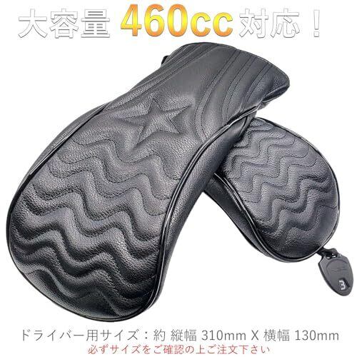 ゴルフ ヘッドカバー 高級pu革 ドライバー DR ウッド用 FW 2点 ヘッドカバー 3点セット 波 変換ダグ付き (ブラック)