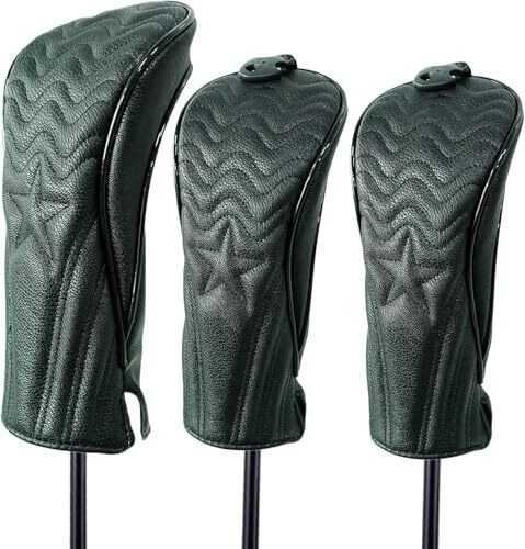 ヘッドカバー 高級pu革 ドライバー/ウッド FW用2点 ヘッドカバー 3点セット 、高品質のPU革で、しっかりクラブヘッドを保護でき、防水タイプ