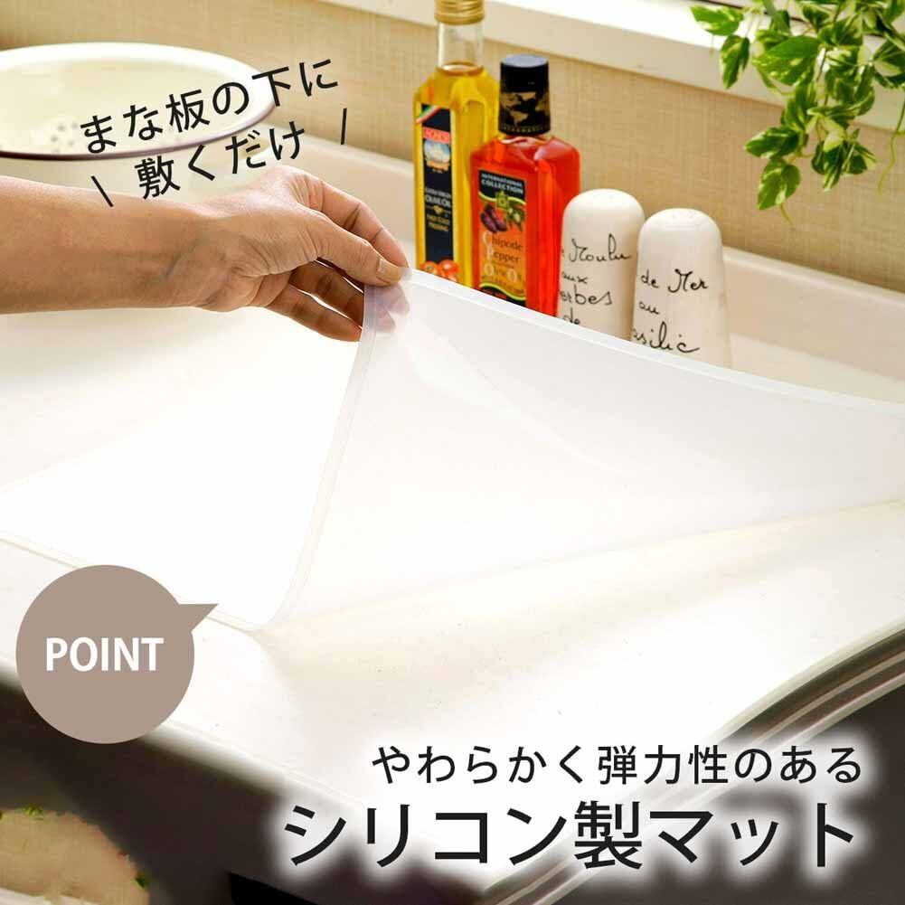 下村企販 調理台保護シート 半透明 46×36cm シリコンマット キズ防止 大理石やステンレス製のキッチンに まな板のすべり止め ズレない 鍋の一時置き 保護マット 35815
