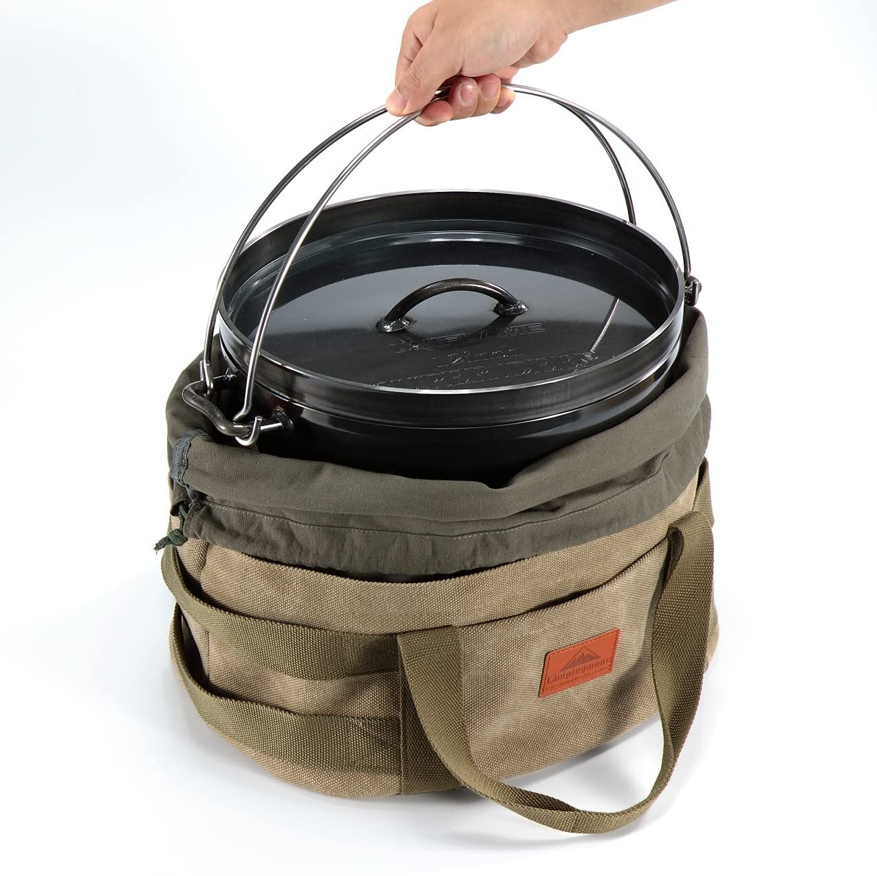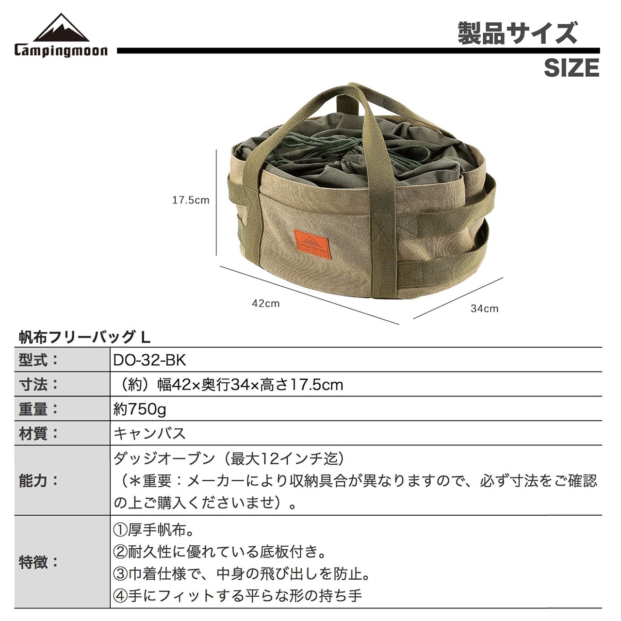 キャンピングムーン(CAMPING MOON) 極厚帆布 フリーバッグ L ダッチオーブン ケース 12インチ キャンプ アウトドア 収納バッグ DO-32-BK