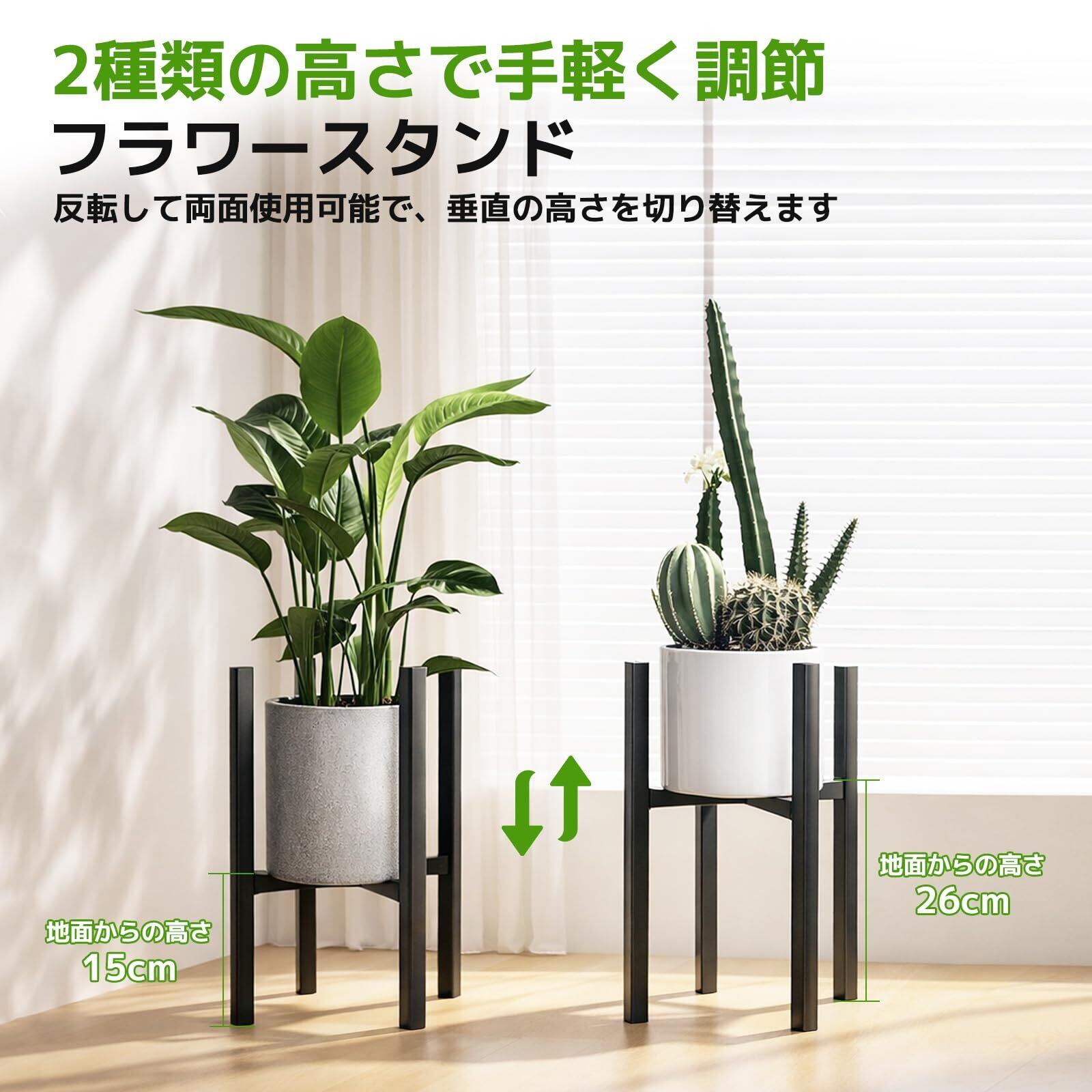 【伸縮式&多尺寸適用】幅が22〜31cmまで調整可能で幅広い鉢に対応可能で、高さ調節もできるフラワースタンドです。鉄製の花台は、さまざまなサイズの植木鉢に対応し、多様な植物の展示ニーズに対応します。花鉢の高さは15センチまたは26センチに調整でき、異なる高さの植物を自由に展示することができます。また植物の成長に合わせて調整できますので、長く使用可能です。簡単かつ迅速に複雑な工具を使わずに、1人でも楽々に組み立てることができます。