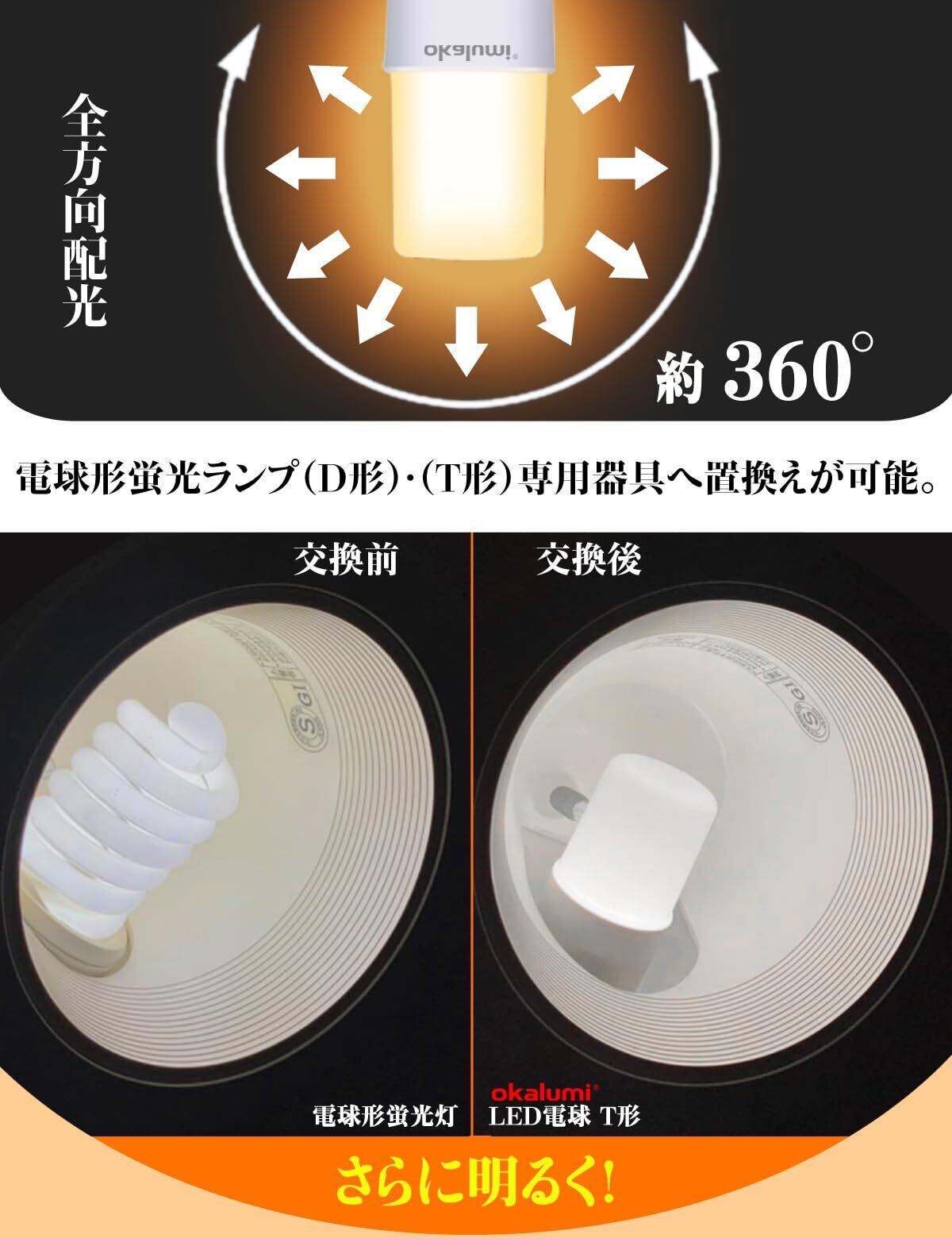 okalumi LED電球 E26口金 T形タイプ 60W形相当 電球色 1099lm 断熱材施工器具対応 全方向タイプ 電球型蛍光灯 EFD25・EFD15形代替推奨 風呂 キッチン 洗面所照明 ledライト 6個セット