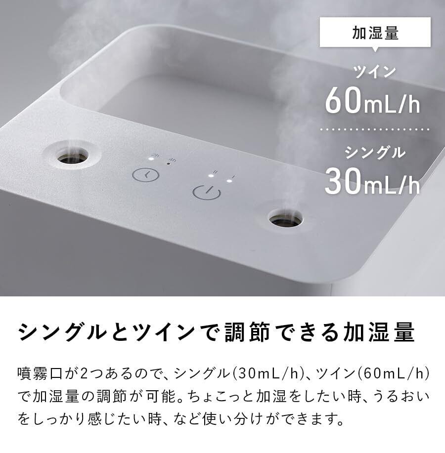 最大加湿量:ツイン/60ml/h、シングル/30ml/h