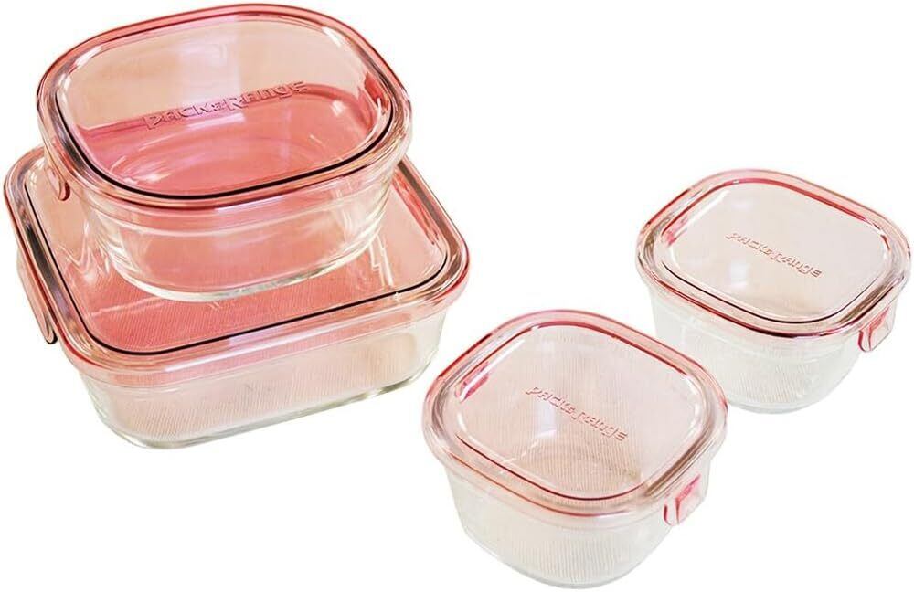 iwaki(イワキ) 耐熱ガラス 保存容器 ピンク 角型 4個セット パック&レンジ PS-PRN-4P1