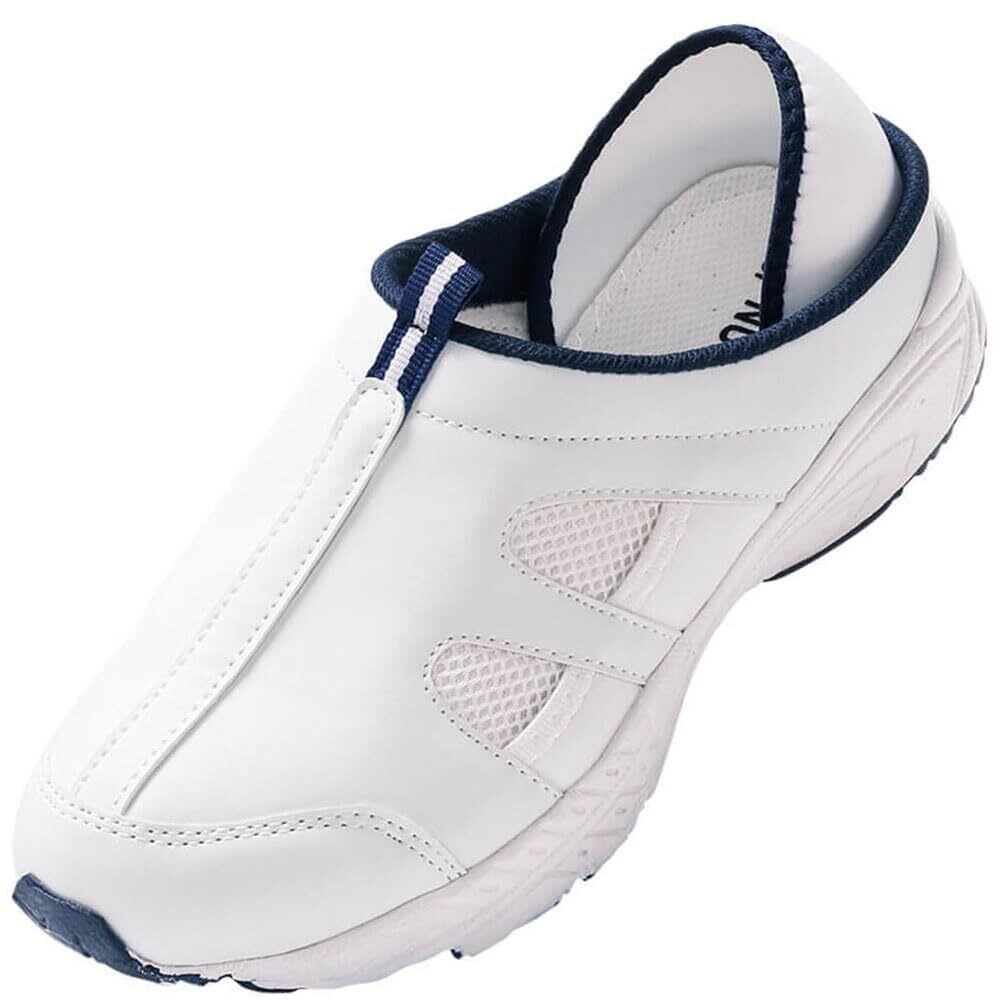 [ナースリー] デイリーシューズ 2WAY 超軽量 約170g 幅広4E ヒールカップ式 通気性 メッシュ 男女兼用 医療 看護 介護 24.5 ホワイト×ネイビー 1601211A