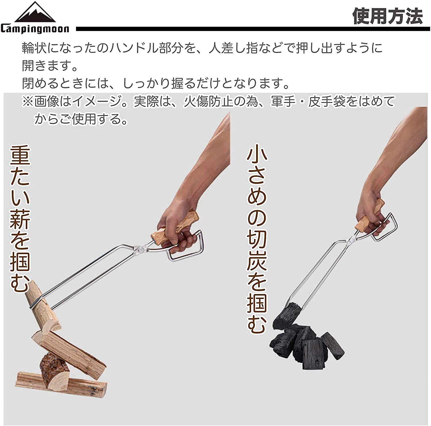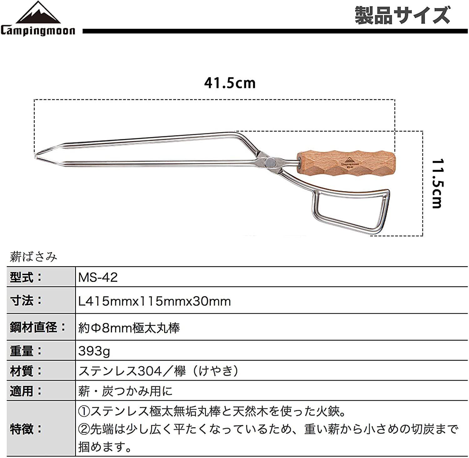 キャンピングムーン(CAMPING MOON) 焚き火用 薪ばさみ ステンレス 火ばさみ 火鋏 MS-42