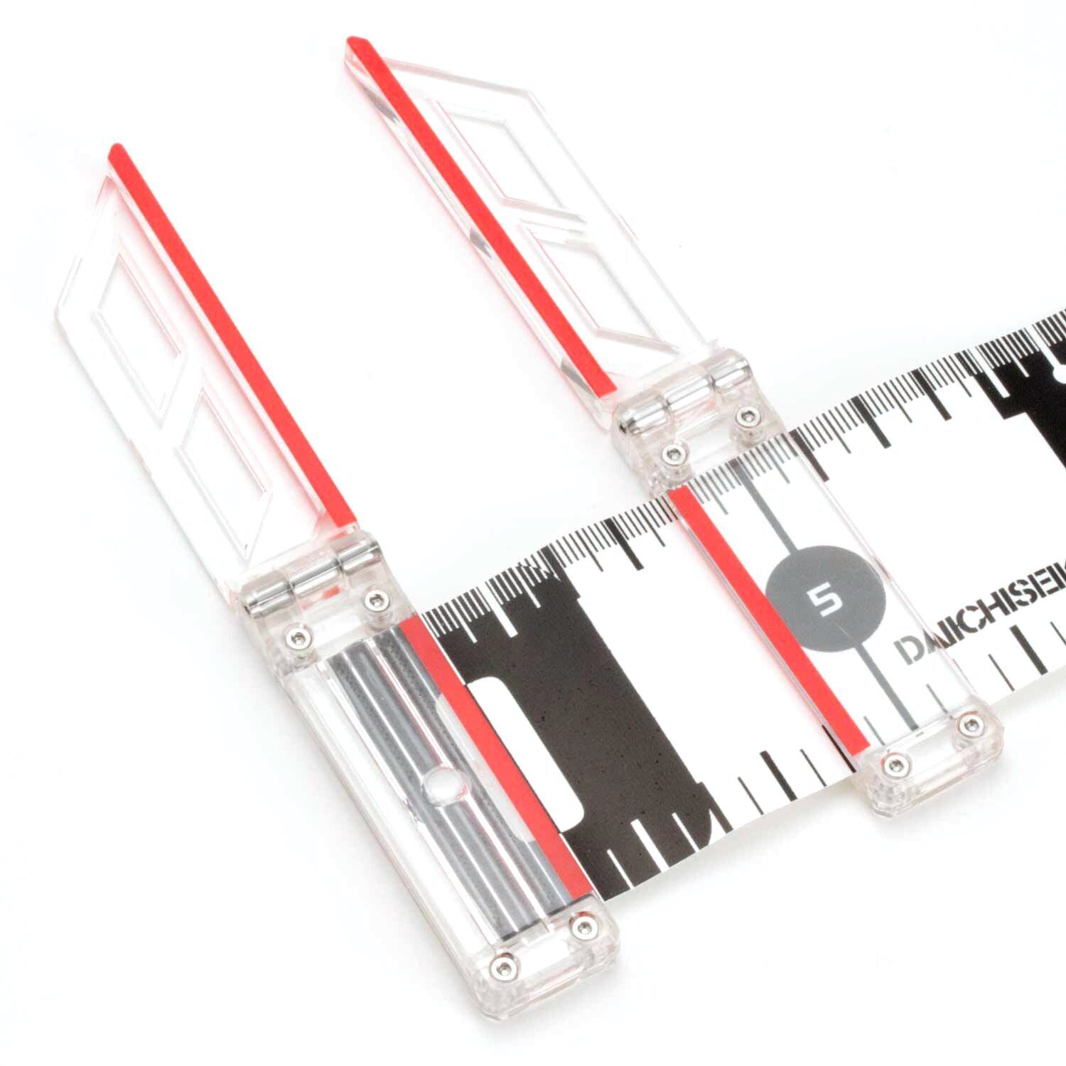 1250mmまで計測可能。夜間でも視認性が高いクリアカラーのマース素材メジャーに大型目盛を採用。ノギスには視認性の高い蛍光レッドのピンラインを採用しSNS投稿用の撮影にも最適です。