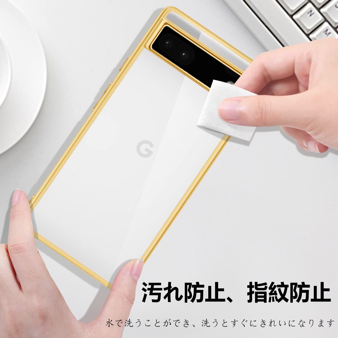 ONETIAOLONG に適合するGoogle Pixel6A 用のケース クリア グーグル ピクセル 6A 用のスマホケース TPU素材 薄型 耐衝撃 カバー ストラップホール付き 落下防止 滑り止め (ゴールド)