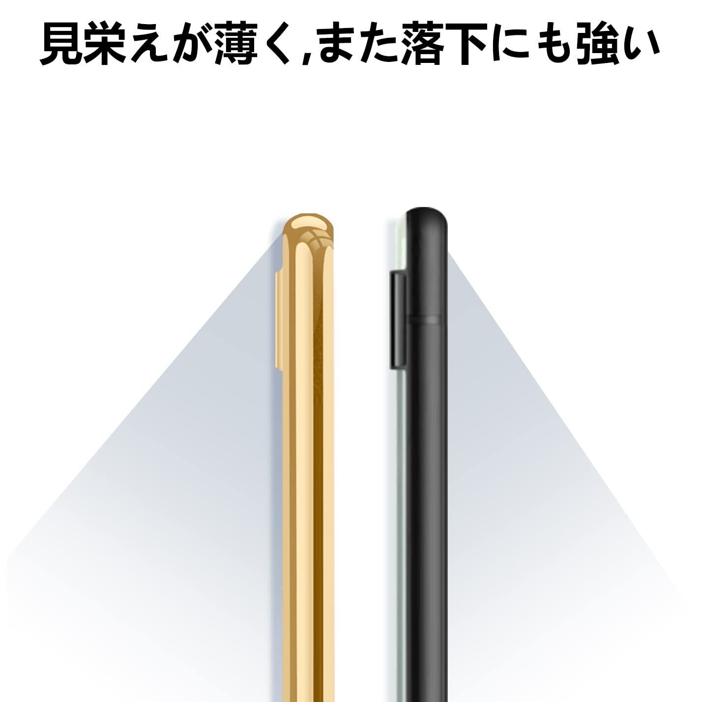 【全面保護】カメラレンズの周りに段差をつけて擦り傷を防ぎます.スマホへの傷つけを防止します.また、カバーの各コーナーを強化し、衝撃を最小限に抑えます。平らな場所に置いても画面やケースの背面がおいた場所に触れることはなく、傷を最小限に抑えることができます。