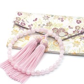 数珠の特徴:◆ローズクォーツ 持つ人をやわらかい波動で包み込み、感情の荒波を鎮めて、深い内面的な愛を引き出すといわれています。また、美意識に作用して、みずみずしい若さと健康を保つ働きがあるそうです。