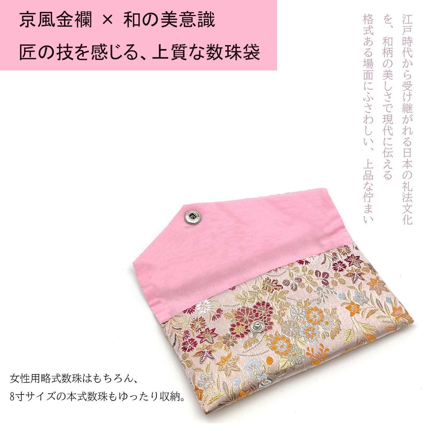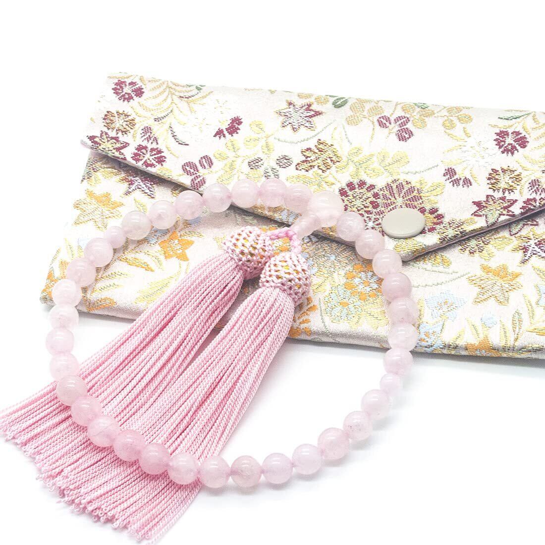 永善念珠屋 数珠 女性用 紅水晶(ローズクォーツ)8mm玉 金襴 数珠入れ 葬式 葬儀 お通夜 略式 じゅず 女性 手作り ねんじゅ