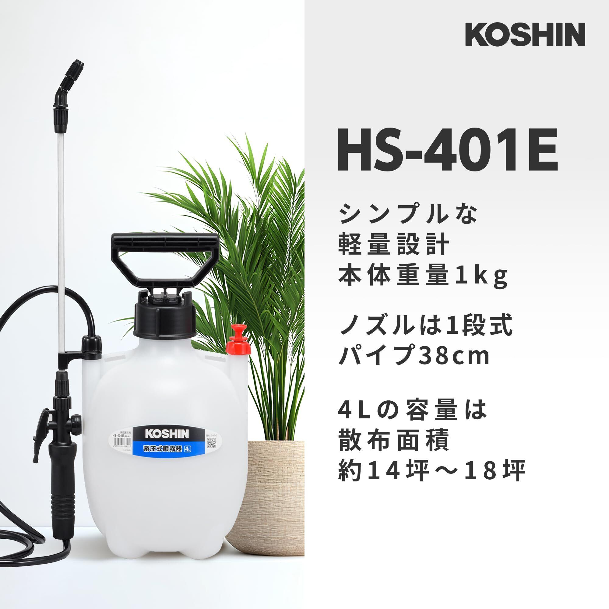 工進(KOSHIN) 蓄圧式 噴霧器 タンク 4L ミスターオート HS-401E 1段 ノズル 噴口 1個 防除 消毒 散布