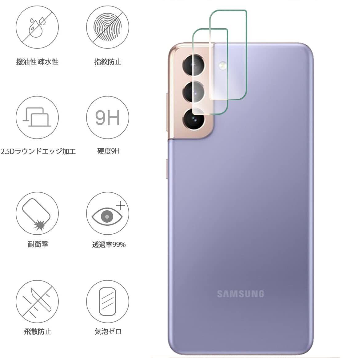 【対応機種】FOR Galaxy S21 5G SC-51B SCG09 6.2 用のレンズ保護フィルム+ガラスフィルム