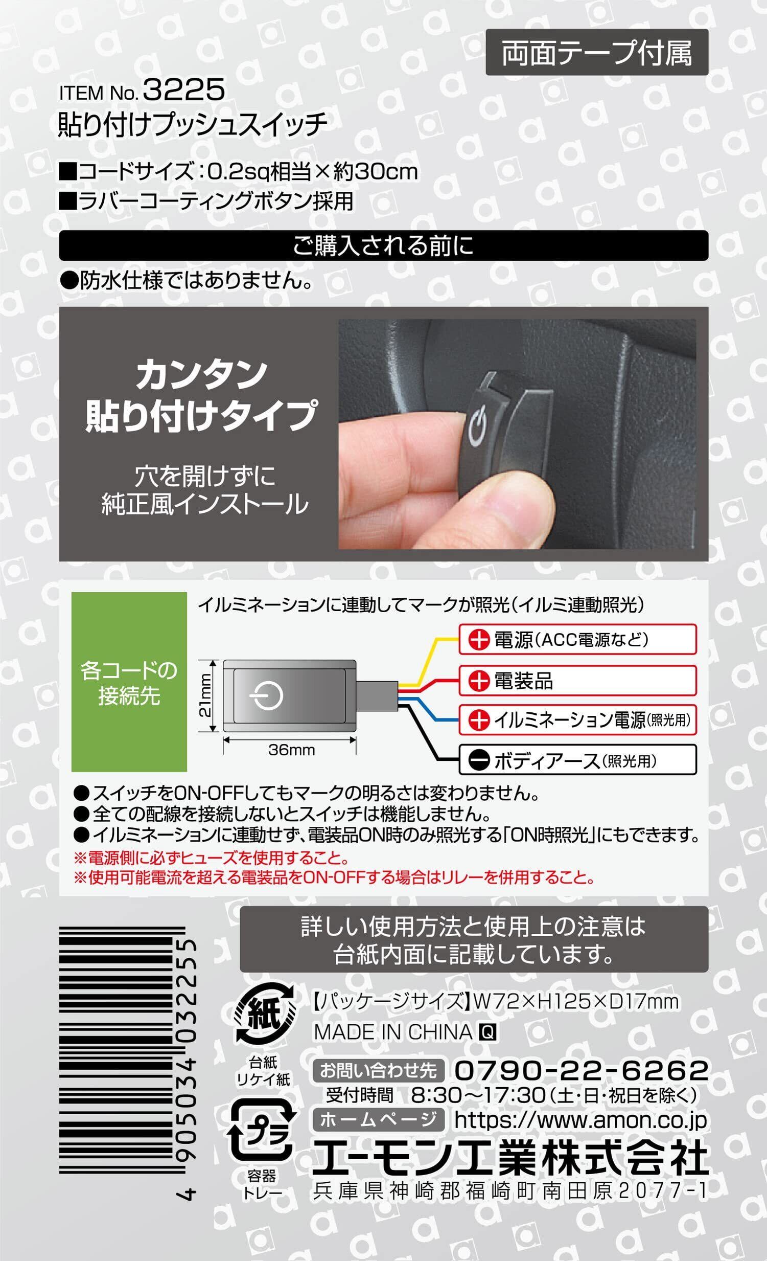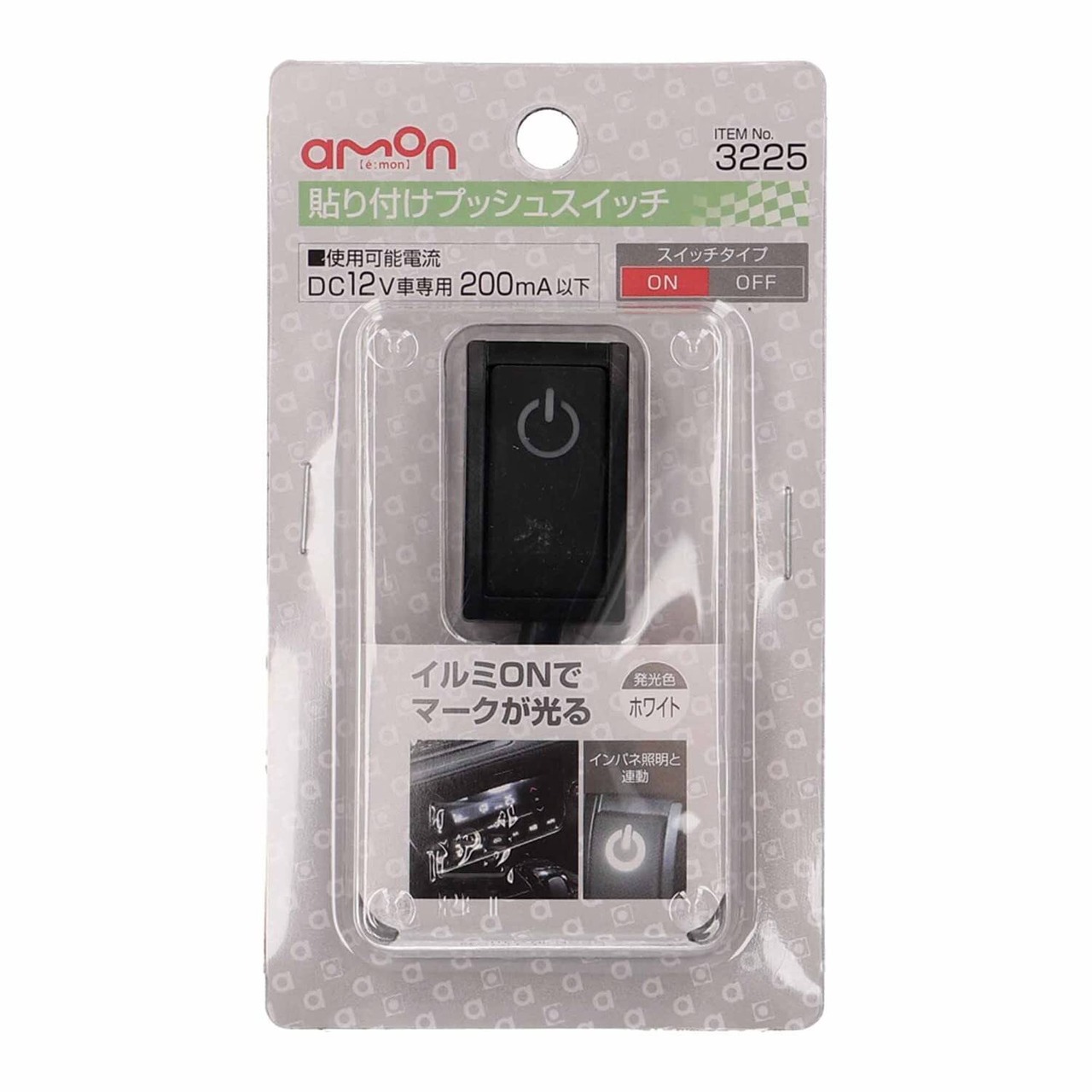 エーモン(amon) 貼り付けプッシュスイッチ ON-OFF DC12V・200mA 発光色:ホワイト 3225