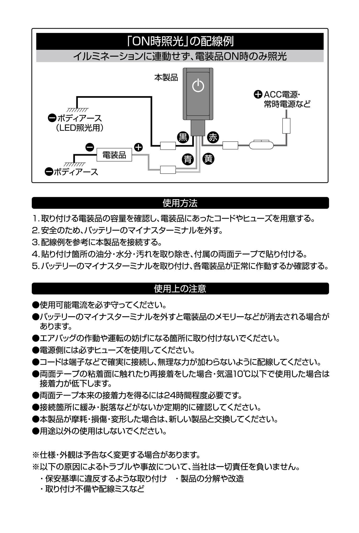 使用可能電流:DC12V車専用・200mA以下