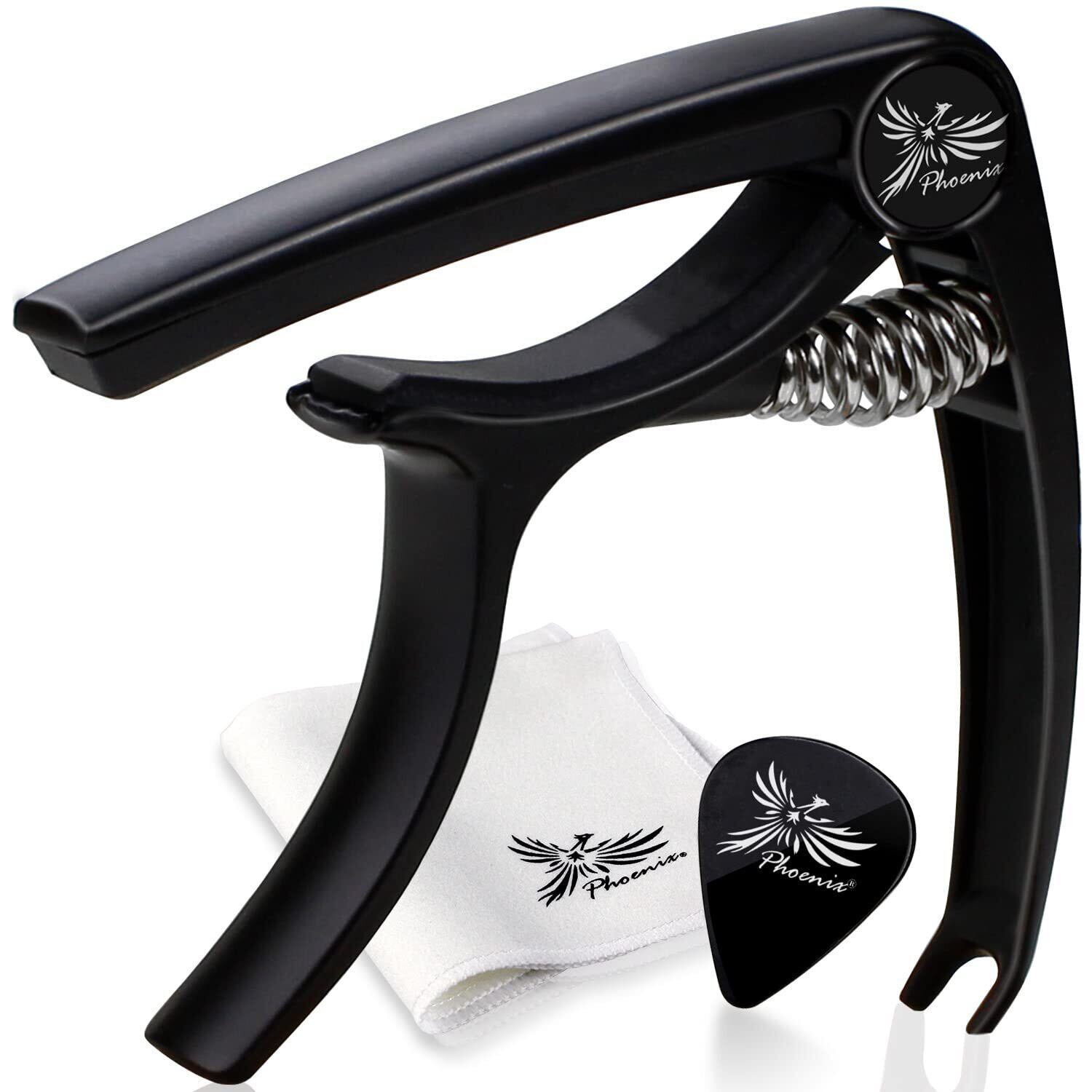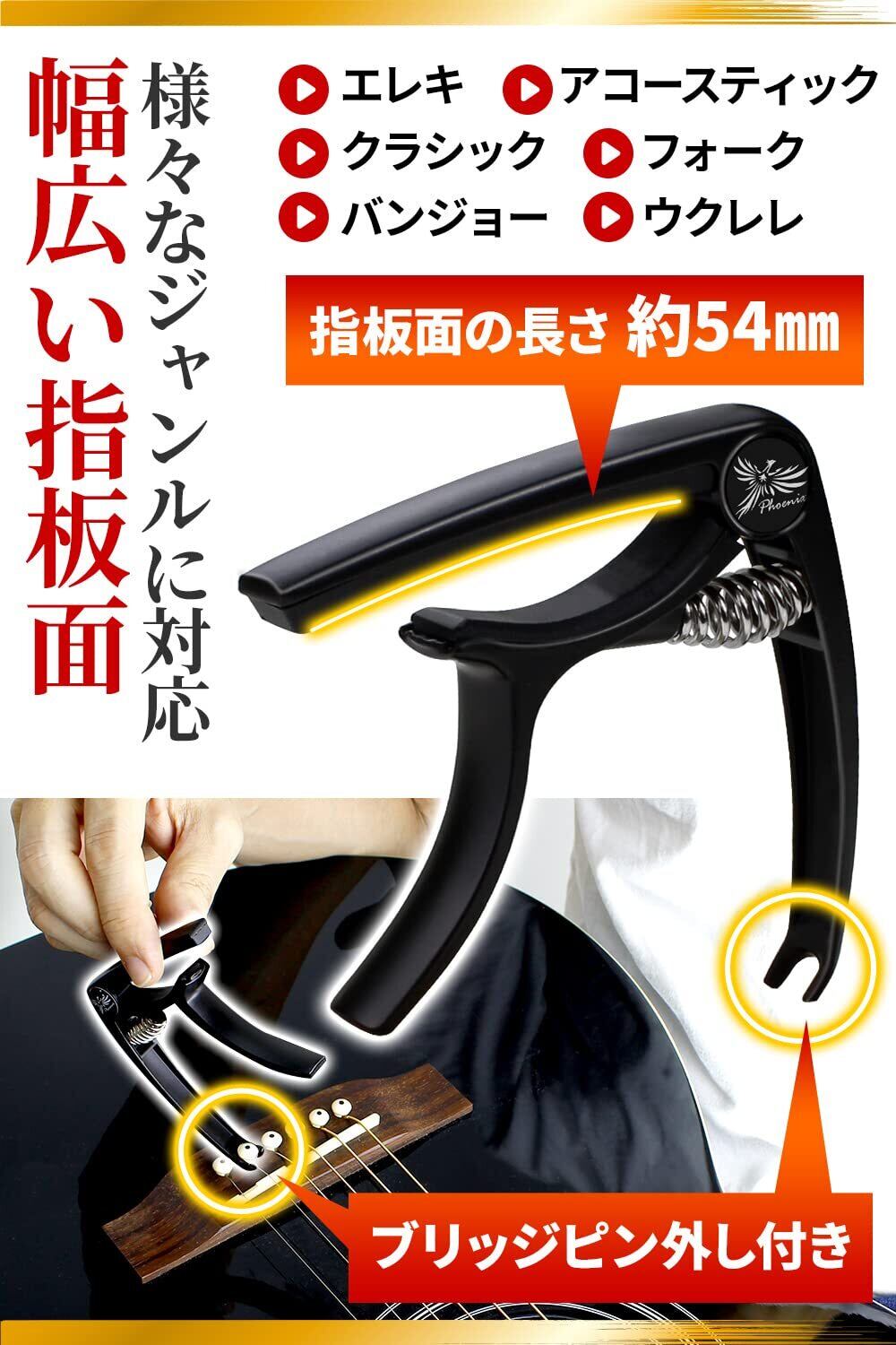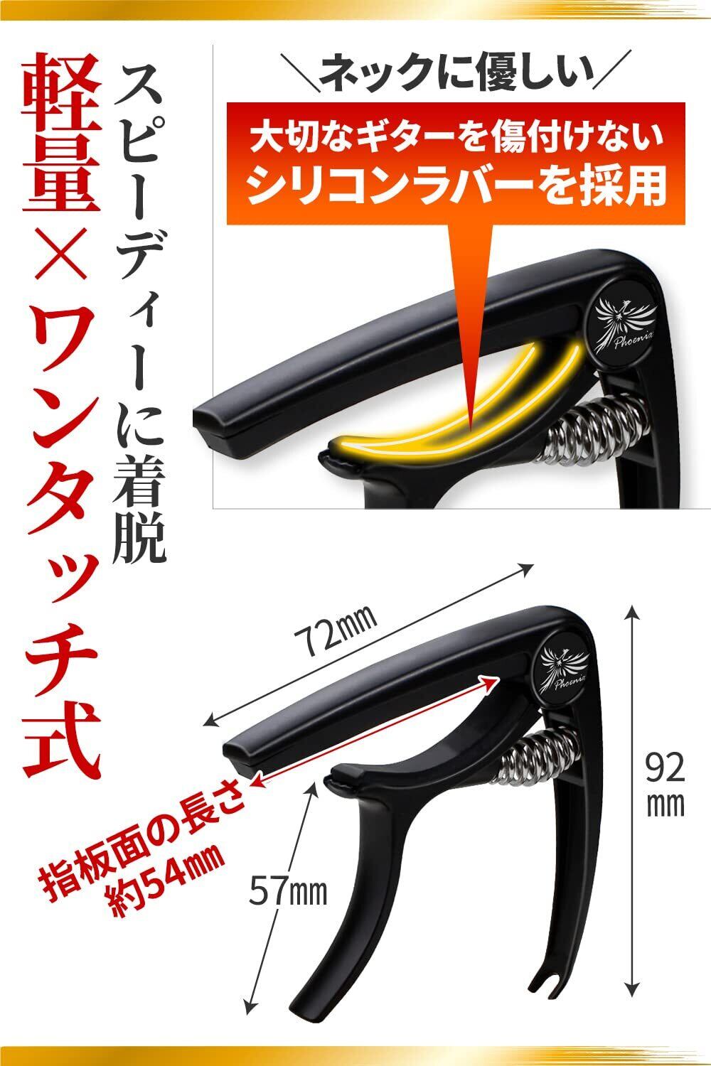 Phoenix カポタスト【type SH】ワンタッチ ギター カポ/お手入れ用ファイバークロス/ピック/メーカー保証書 <4点セット> BLACK