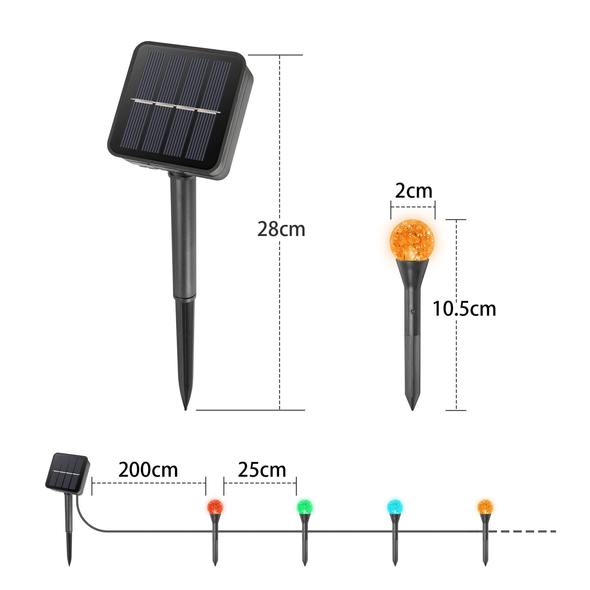 【10球屋外 防水ソーラーガーデンライト】長さは4.25メートルで、10球のLED埋込ライトを搭載しています。ロリポップのようソーラーグランドライトはとても可愛くてピカピカ光る、どこでも設置可能、庭園や小道、ポーチ、ベランダ、クリスマスツリーと盆栽などを美しく装飾し、おしゃれ雰囲気を作り出します。イベントやパーティ、店舗のデコレーションにもオススメです。
