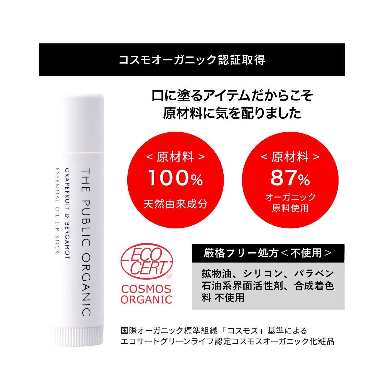 【公式】THE PUBLIC ORGANICからの出品は既に終了しております。許可なく出品されている転売品については、保管状況や取扱い状況によって品質に変化が生じる恐れがあり、品質や安全面を保証することができません。ザ パブリック オーガニック 保湿 リップ 【オーガニック認証取得】 100%天然由来 4g (グレープフルーツ&ベルガモット精油) リップクリーム リップスティック 日本製