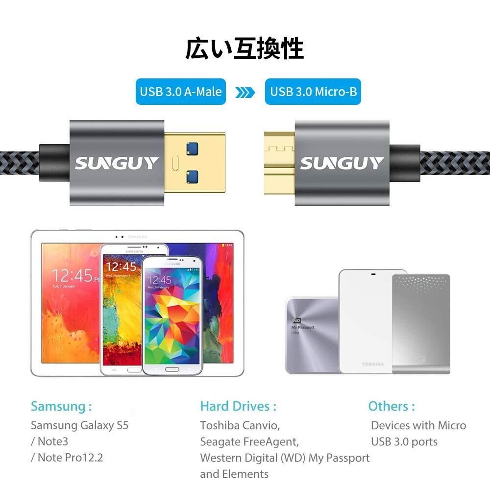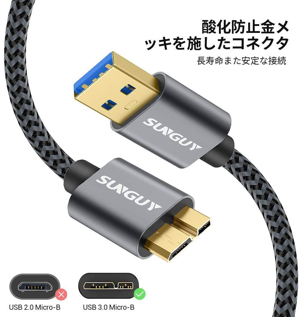 SUNGUY USB3.0 ケーブル MicroB 0.3M タイプAオス - マイクロタイプBオス USBケーブル 外付けHDD/SSD ハードドライブ/HDカメラなど対応 マイクロB変換ケーブル 高速データ転送 0.3m グレー