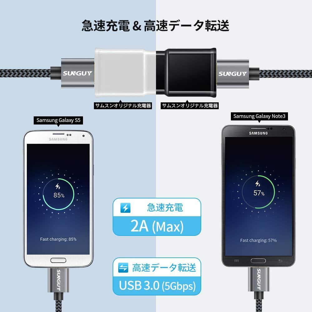 【金メッキコネクタ】このusb microb ケーブルは今回24AWGパワーと32AWGデータ銅線を改善され、コネクタ部分にアルミニウム合金を採用して、だからもっと長く持ちます。