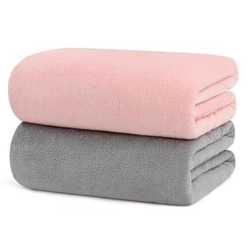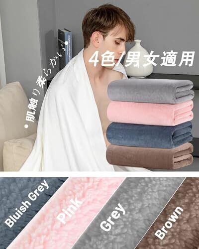 バスタオル 大判 (2枚セット) 180×90cm サンゴフリース バータオル 吸水速乾 バスタオル ふわふわ 肌触り 抗菌防臭 お風呂 耐久性 バス用品(ピンク+グレー)