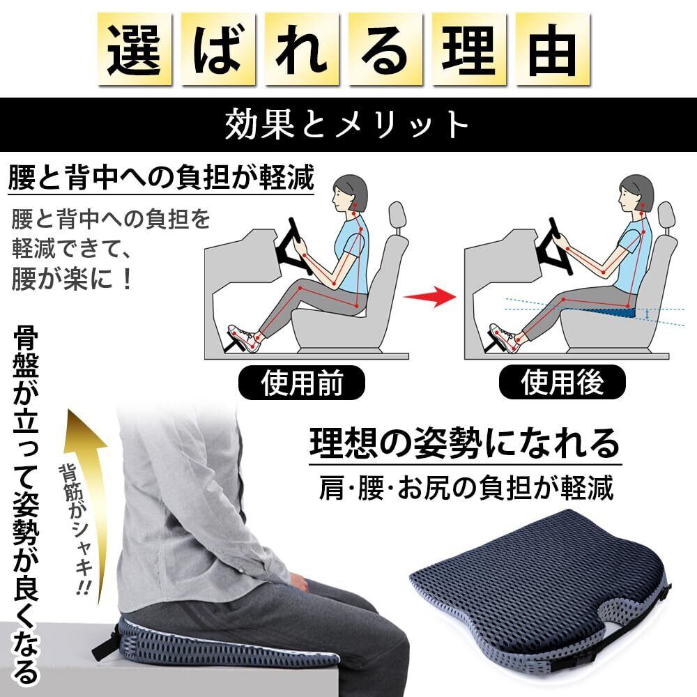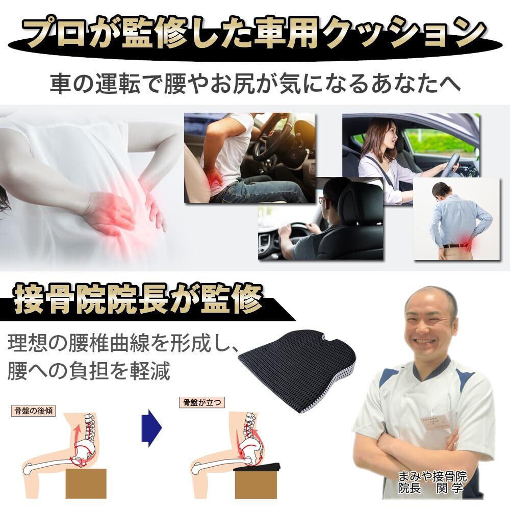 シートクッション 車専用設計 車 座布団 【接骨院院長監修】 運転席 お尻 腰 痛くならない 姿勢 後部座席 椅子 クッション オフィス ブラック×グレー