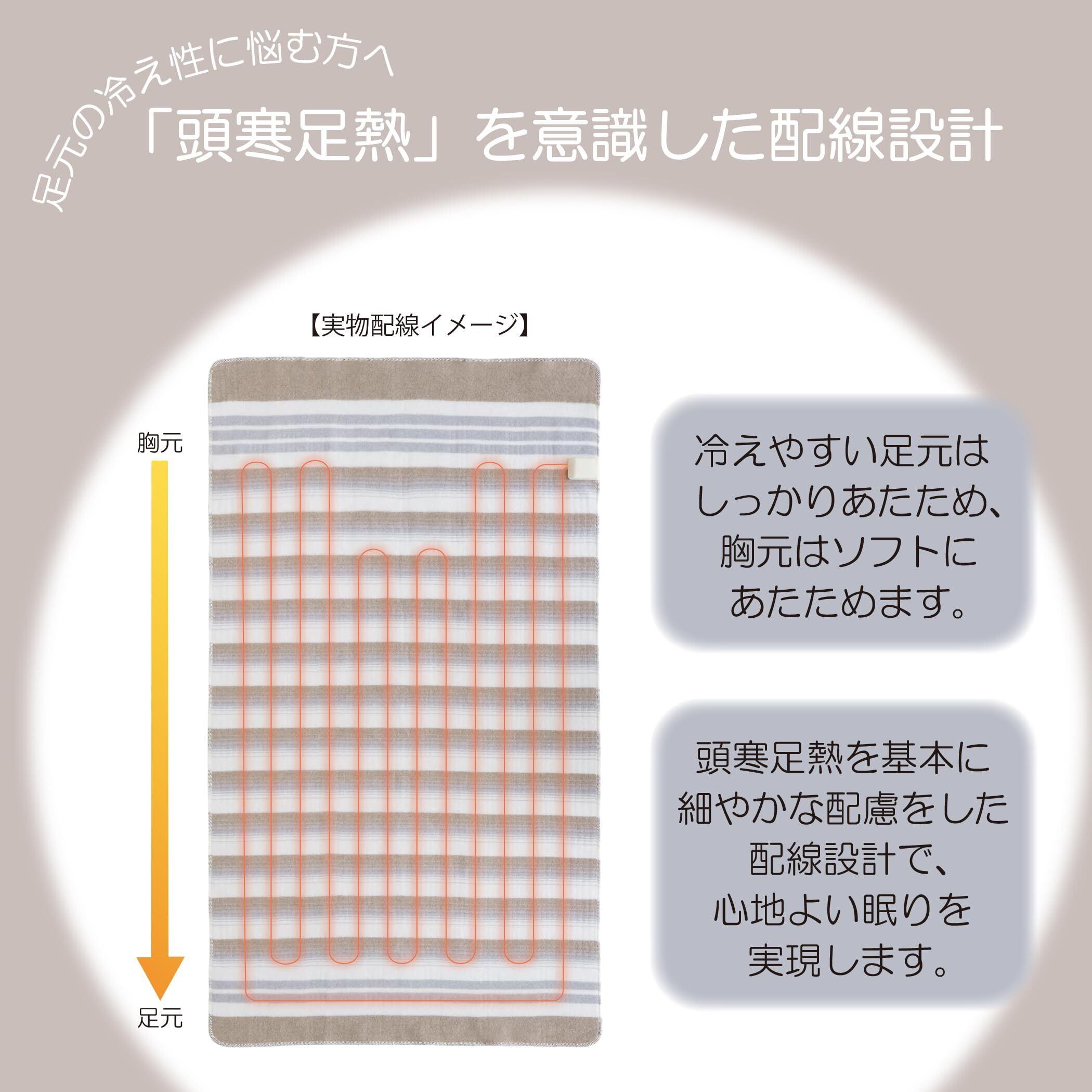 Sugiyama 電気毛布 日本製 電気しき毛布 140×80cm 丸洗いOK 頭寒足熱 ダニ退治 室温センサー スライド式無段階温度調節 NA-023S ボーダー柄(裏面ホワイト)暖房 節電 省エネ 電気代安い