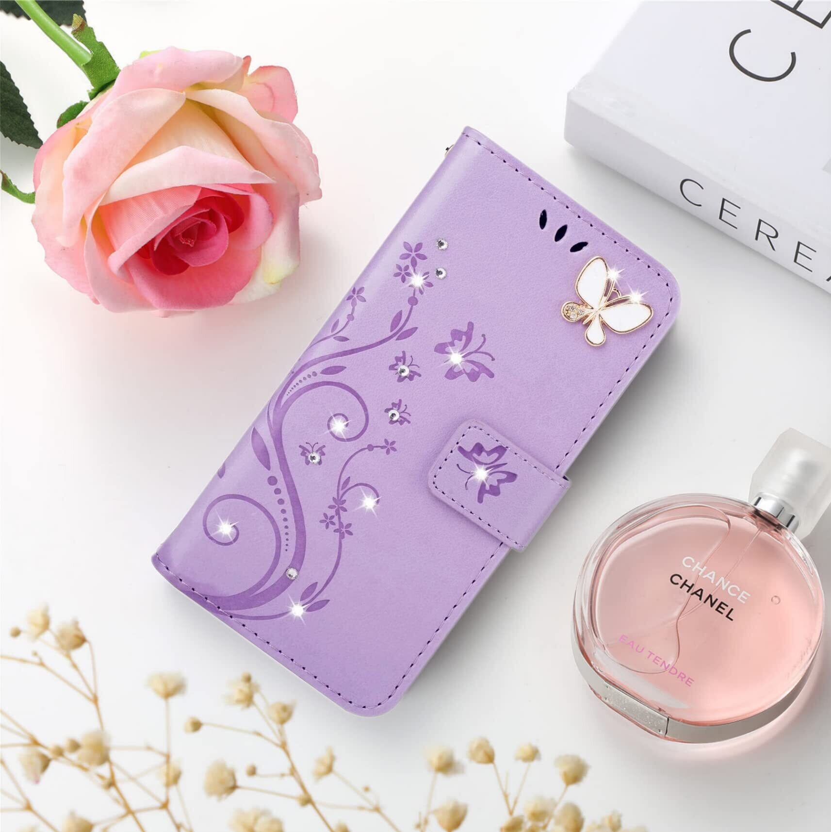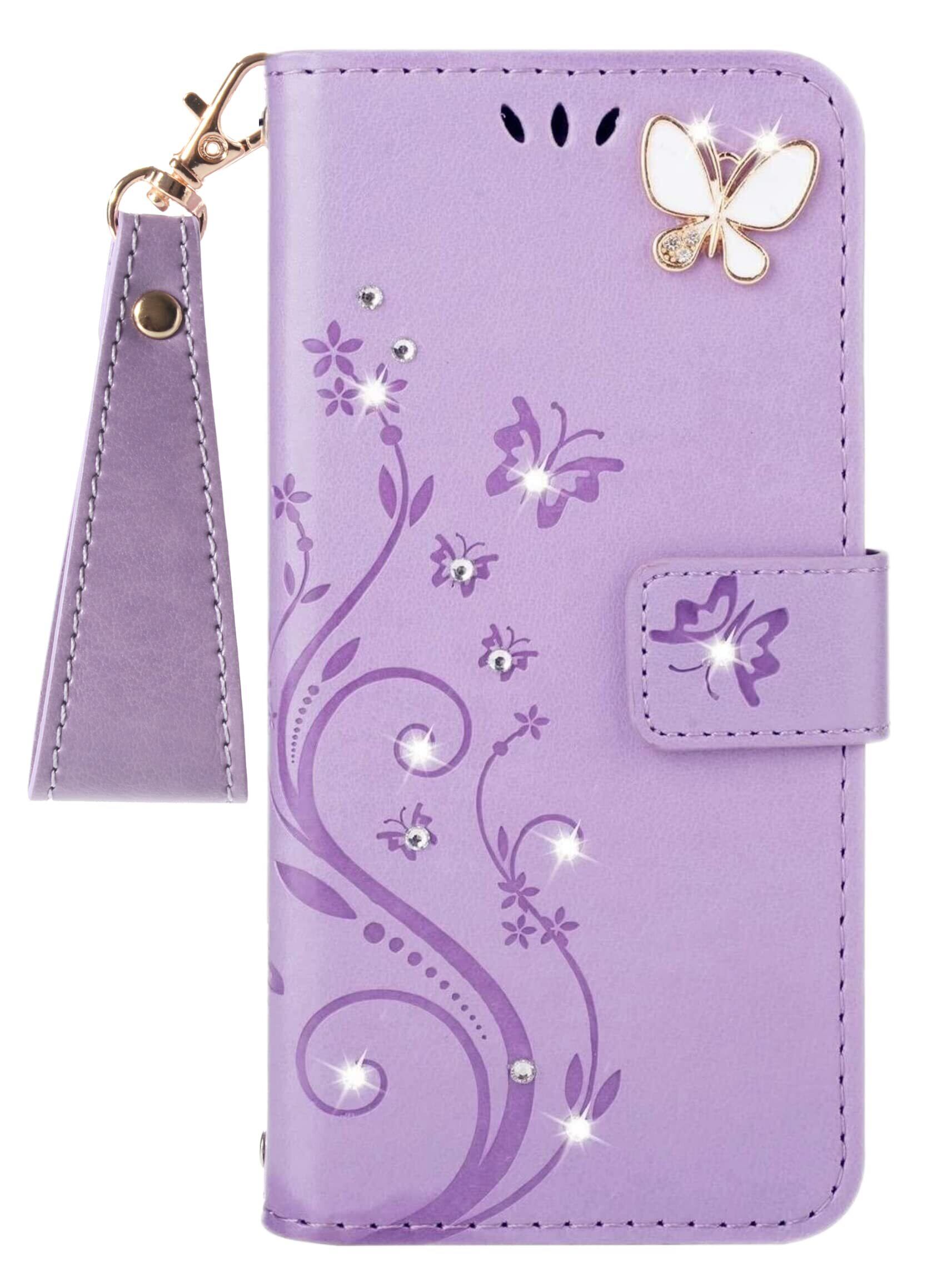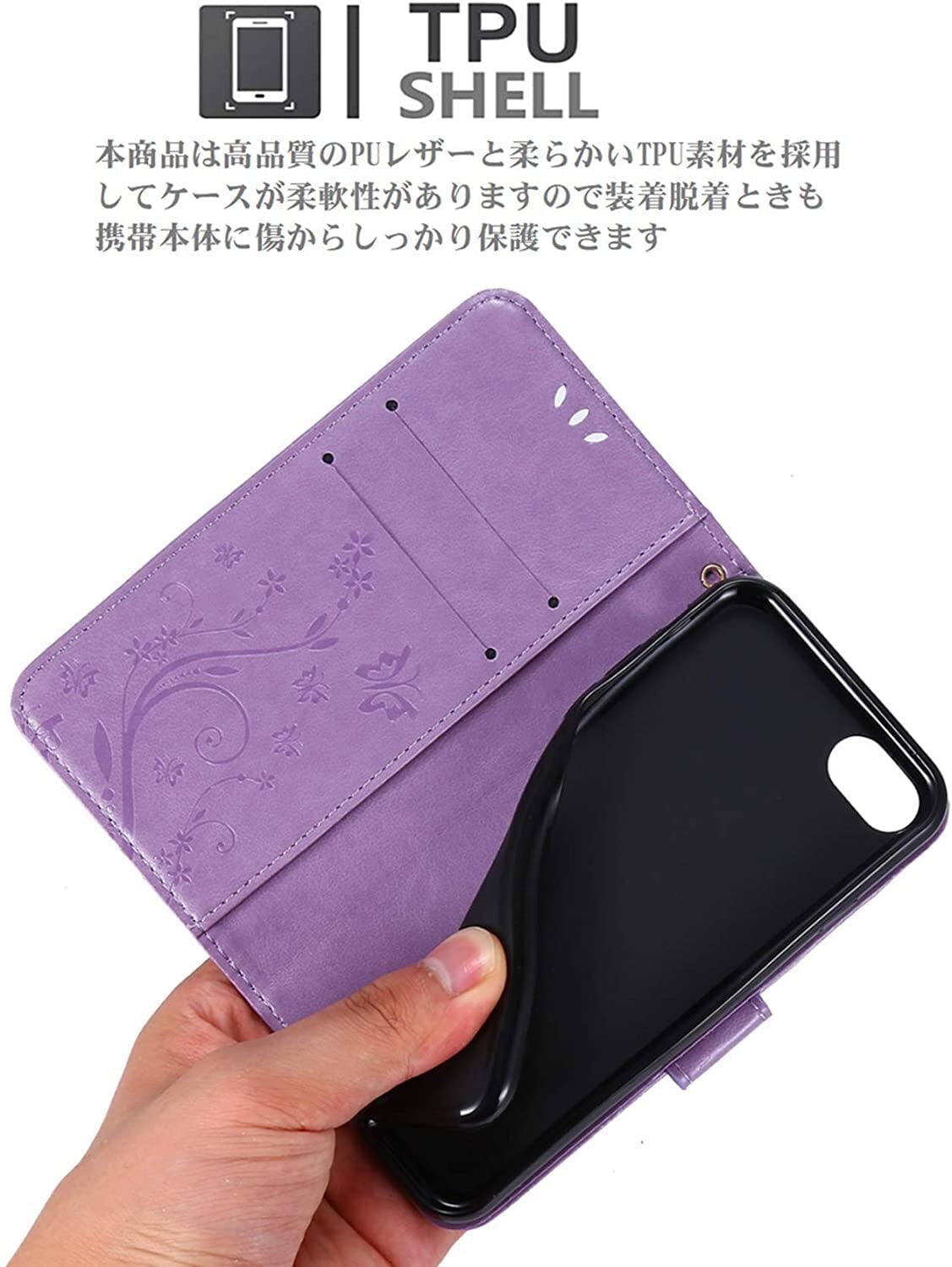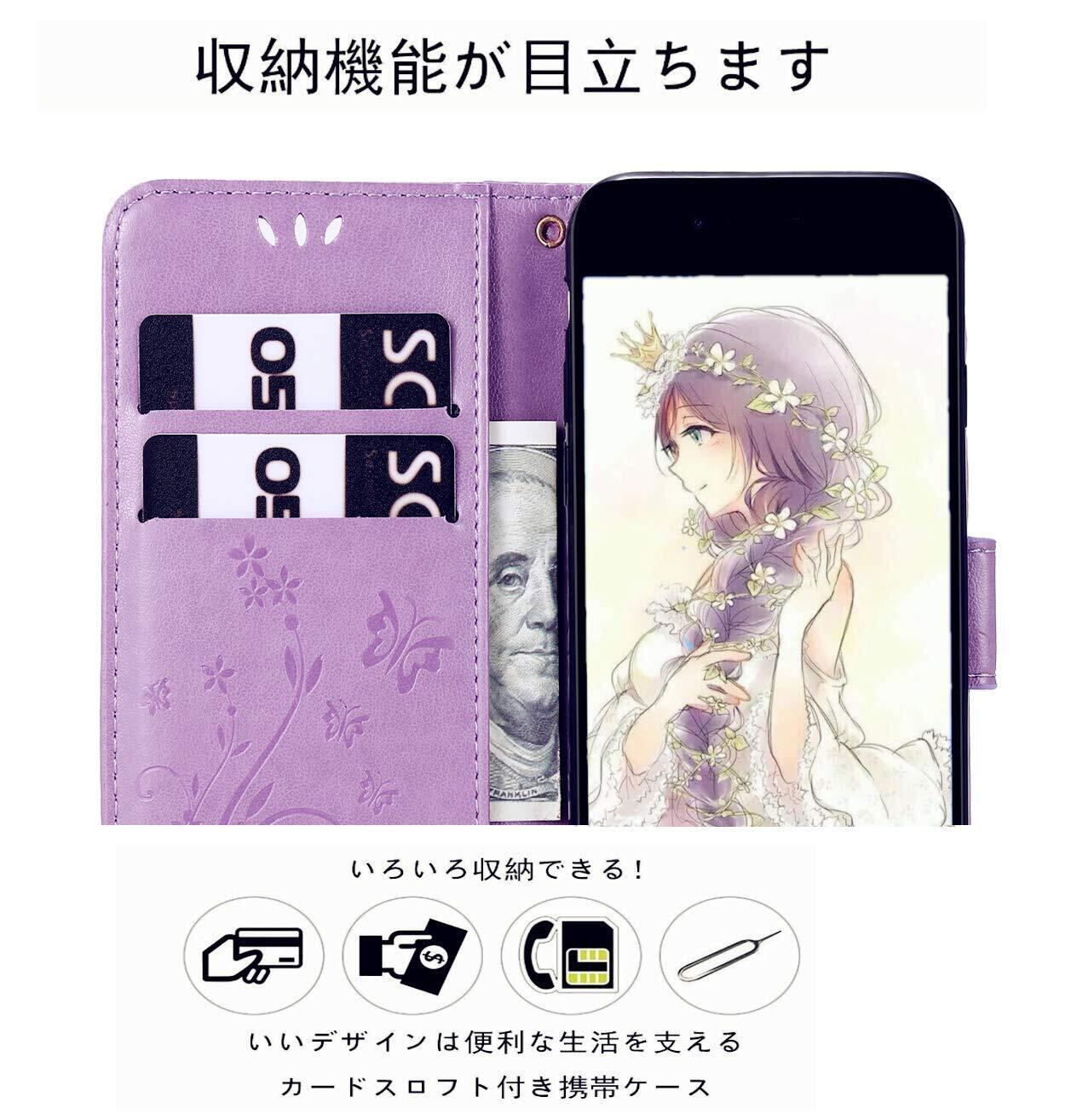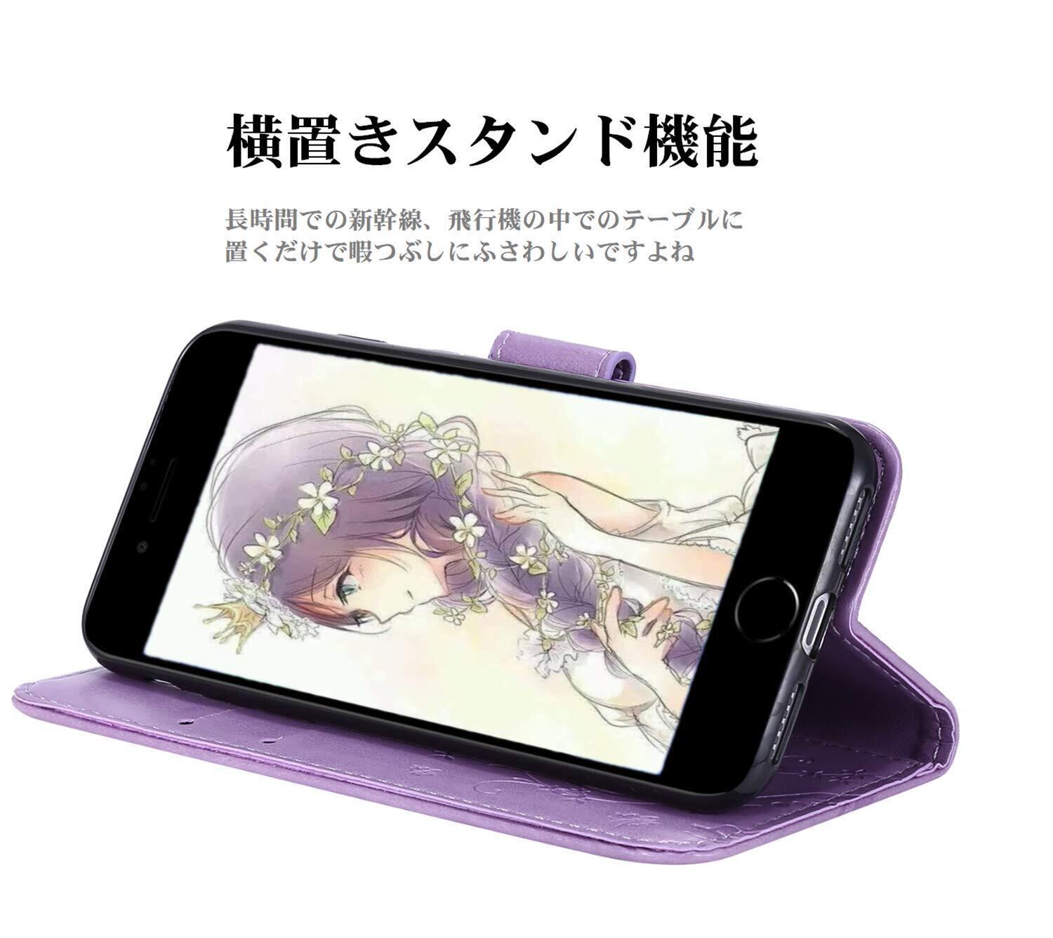 iPhone SE ケース [第2世代]2020/iPhone se3ケース手帳型/ iPhone8/iPhone7/iPhone6/6sケース [第2世代]/Phone SE3 第3世代 かわいい おしゃれストラップ付き カード収納 財布型 人気 横置き機能き薄型 財 マグネット式アイホン8 ケース アイホン7 /6sケース スマホケース ライトパープル