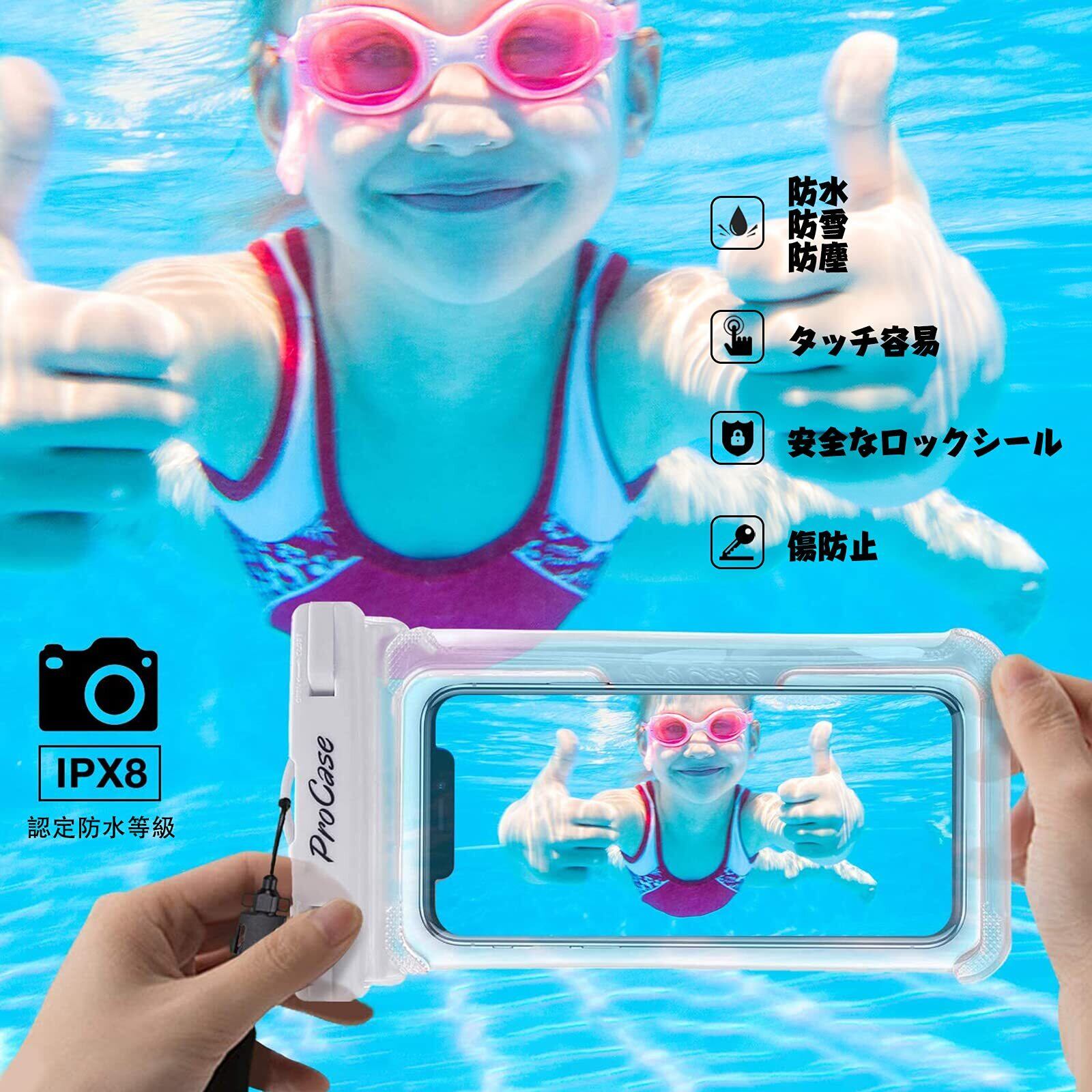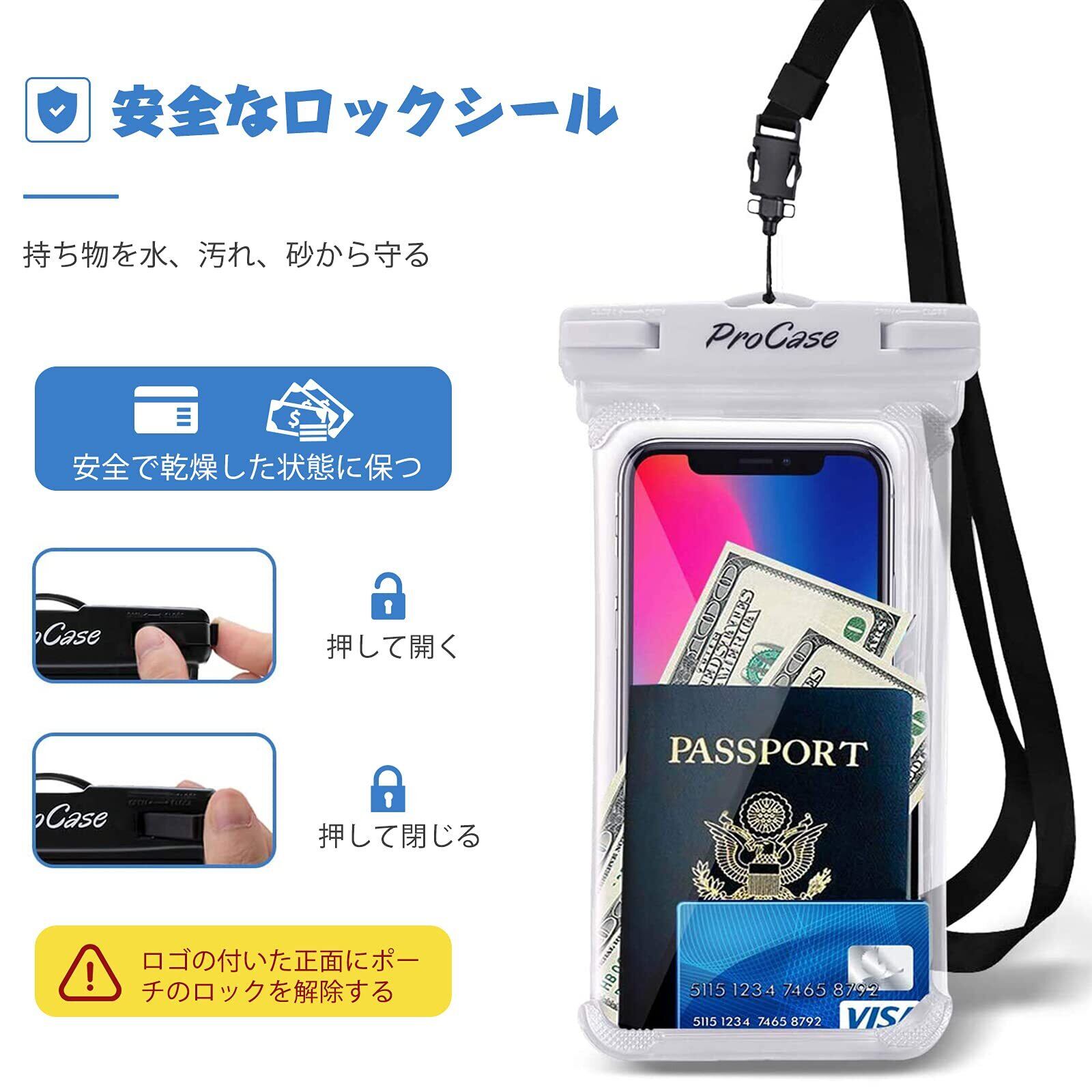 ProCase 防水スマホケース 2個 IPX8認定 お風呂 海 プール 温泉 首掛け式 ドライバッグ 登山 お釣り時の防塵・防水対策 適用端末:iPhone 17 16 15 14 13 Mini Pro Max Huawei Xperia android -ホワイト/ブラック
