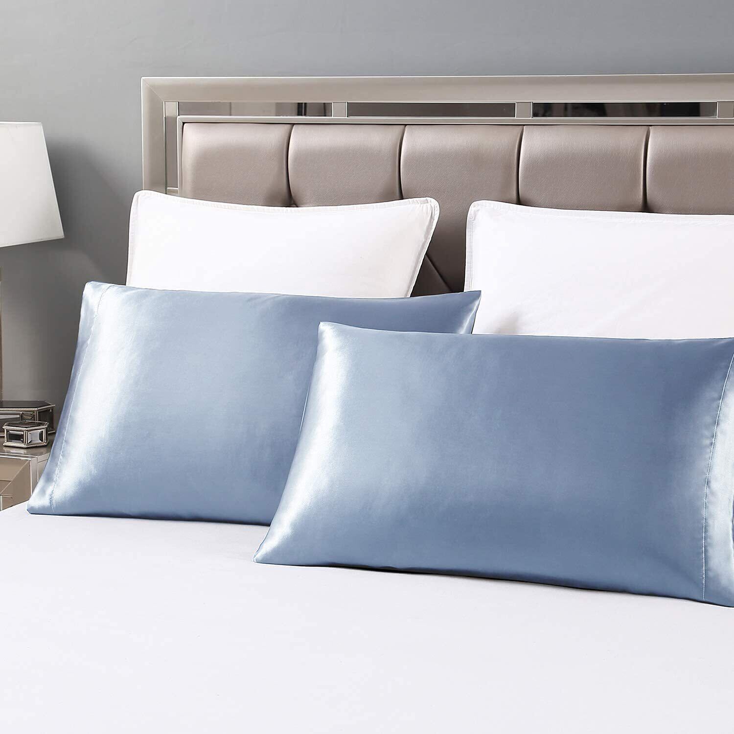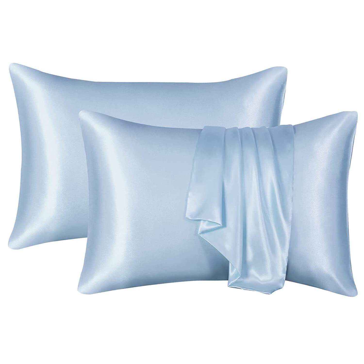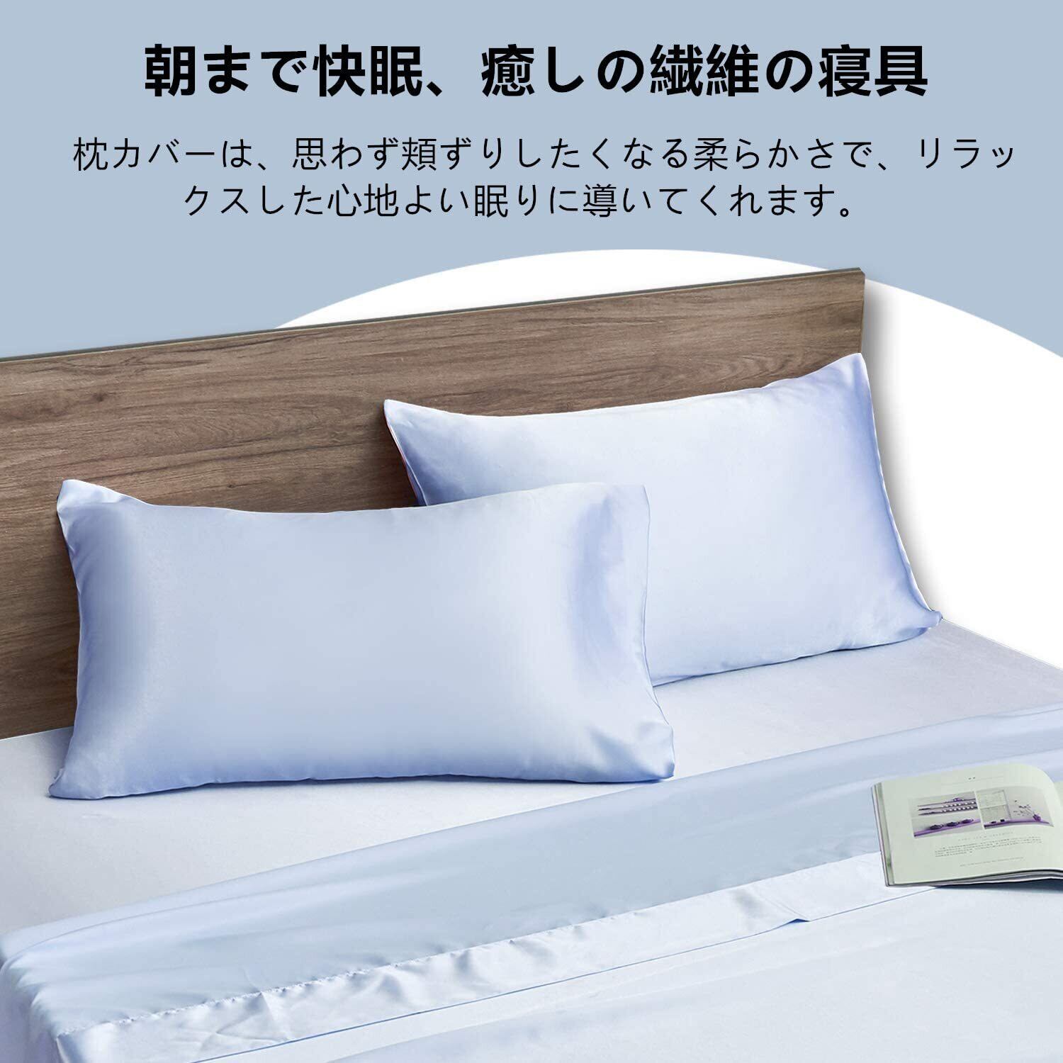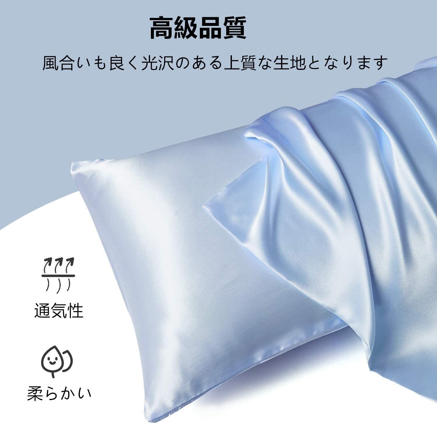 枕カバー 2枚セット サテンの枕カバー 封筒式ピローケース 美肌 美髪 両面シルクタイプ 滑らかな材質 静電気防止 (43*63, 空色)