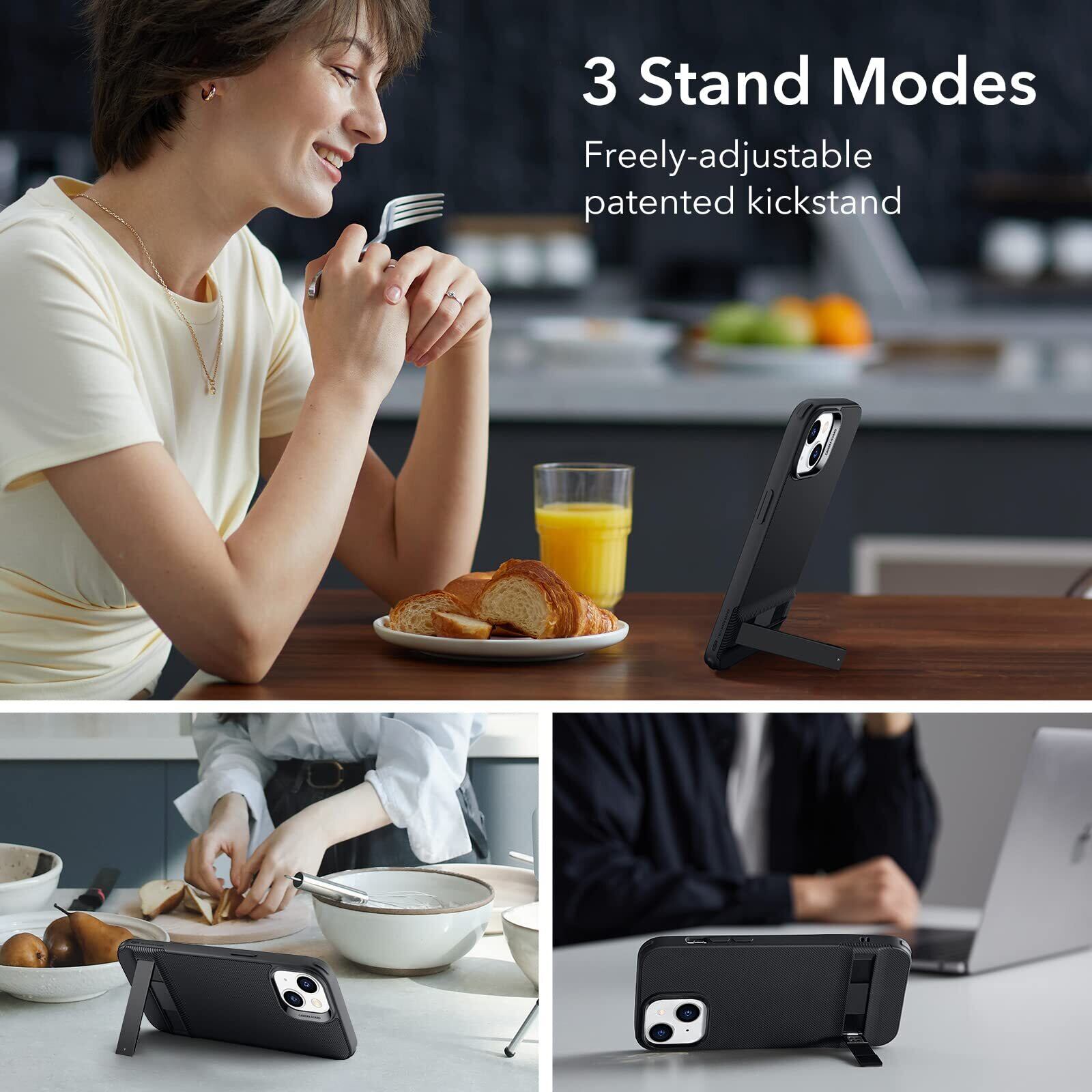 ESR iPhone 14 ケース iPhone 13 ケース メタルキックスタンドケース 3wayスタンドモード 米軍MIL規格の落下防止 ワイヤレス充電対応 スリム 特許取得済み スタンド付き 6.1インチ ブラック